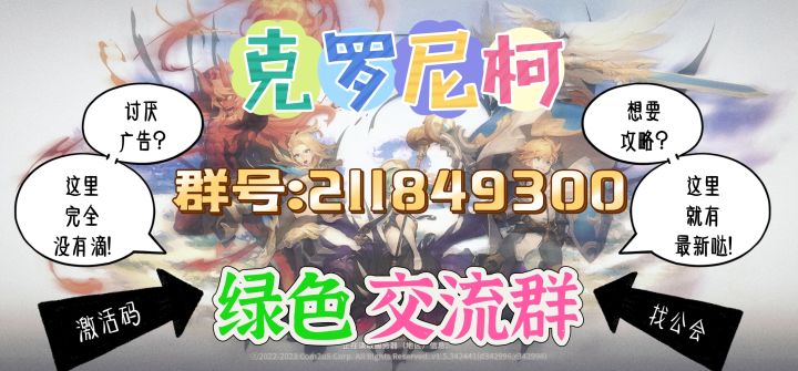 克罗尼柯刚出,注定要火。楼主为了找攻略,加了几个群,结果都是代充骗子搞的,专门用来薅韭菜。楼主索性自己弄了一个游戏交流群。想要攻略?这里会更新!想找公会?这里可以招人!不知道如何充值?这里告诉你!优秀的玩家,配得上一个优秀的平台。克罗尼柯战记绿色交流群欢迎你#(酷)企鹅群号:211849300。ps:游戏刚出,所以群也是新的,加群就是元老,请各位入群时有点耐心。