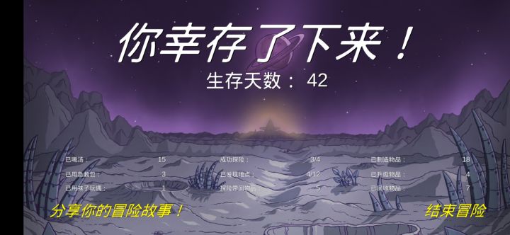 游戏真心简单,第一次玩就通关了,一共就带了一个人,生存70天,食品架没满过,生存的主要要点是丢车保帅,只要死不了,就往死里作