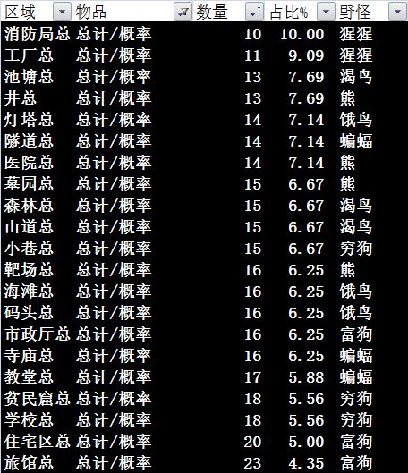 本文摘自根据dalao的可知,一个区域内拥有的物品种类数关系到搜索效率。特此更新区域物品种类数表如下其中数量即为该区域物品种类总数,占比为在该区域搜索一步得到某一特定物品的概率。举个栗子:消防局共有10种物品,如果我开局直接到消防局搜索一步,(假设只搜索到一个物品),那么搜索到电池的概率为10%下面我们来计算一下开局做水电池需要的步数期望:假设开局身上已经有水,在消防局搜索到水不