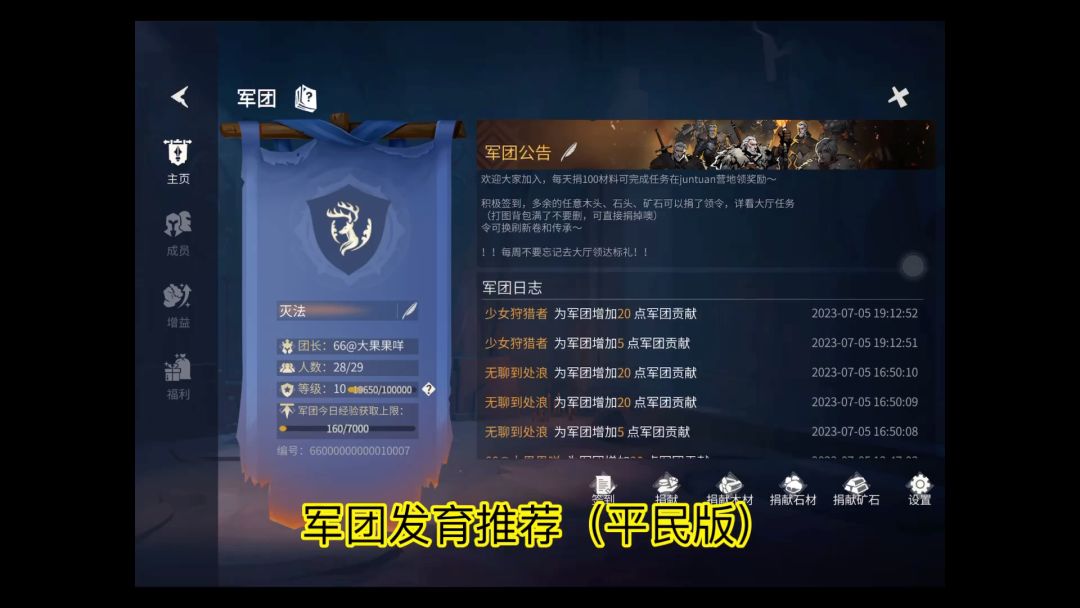 军团发育推荐(平民版)
