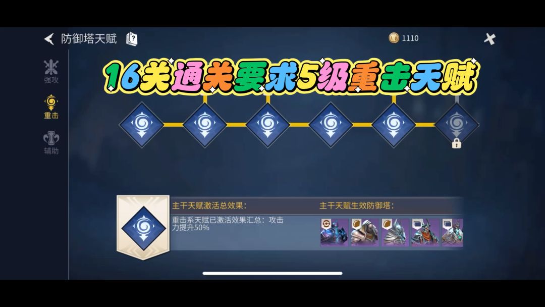 让大家久等了,通关天赋需要5级重击,没有到的同学不要尝试了,优先15关完美升级天赋。 打法不是百分百,失败了多试几次,这个打法我就一次通关马上做视频了,做视频时也是一次通过。通过机率应该很高的,大家加油。