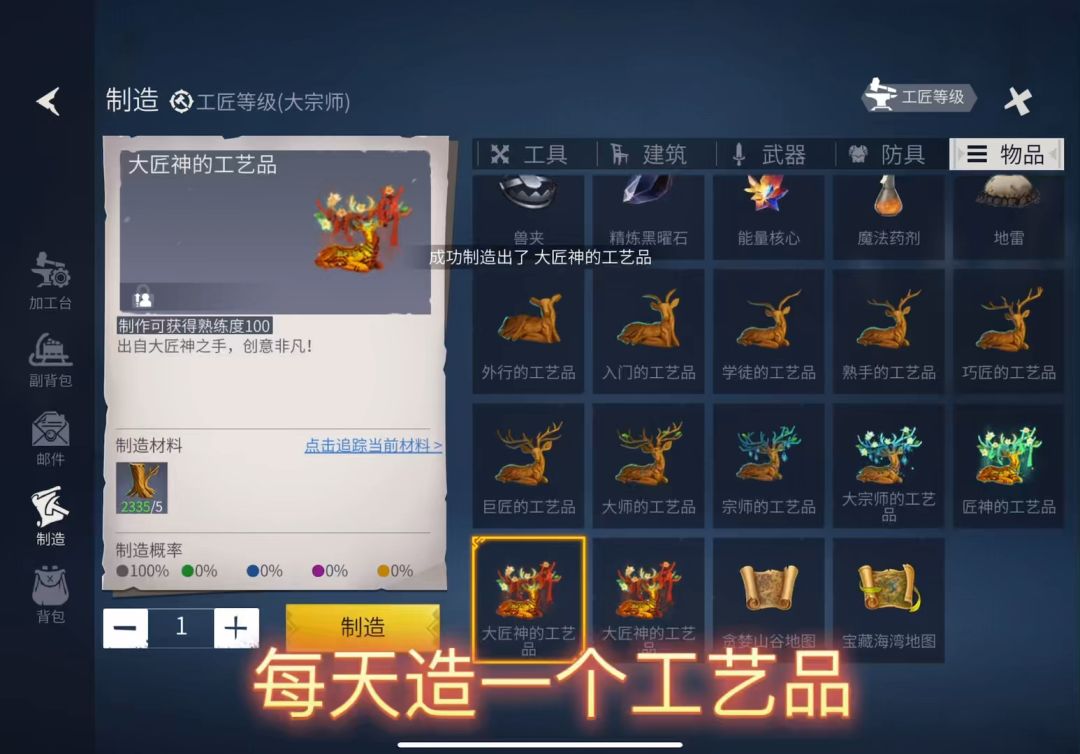 每天一个工艺品熟练度翻倍