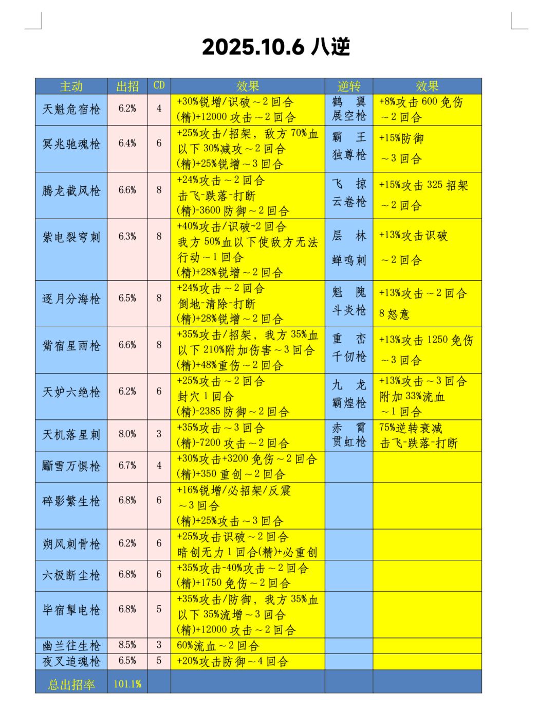 前言 本文是基于本职业——棍,所做的阵法六弟子出招表,但是所有职业都可以参考。棍拳腿职业可以直接参考刀剑枪弟子的技能,棍拳腿弟子最好按照自己的本职业理解来,我有我的理解。刀剑枪职业参考时,需要用锐增buff技能替换其他技能。 2026.3:根据目前西域和天音囚牢的最新进度,所有弟子都选择逐电追风的副心法以适配当前新图的命中需求。弟子天赋推荐:破防,加攻,命中(4815),身法(2490命中)。 红