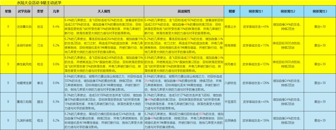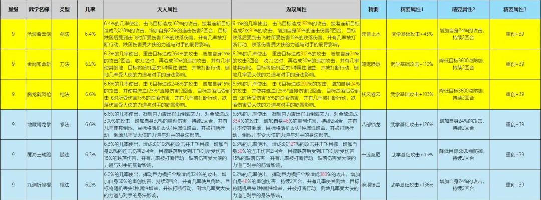 不计算其他任何变量,只额外计算武学本身带来的效果自己本身能吃的部分带来的系数(说的就是坠落)。 剑 上期系数:143×3=429(无精要) (143+30)×3=519(有精要) 本期系数:192+91×2=374(无精要) 192+91×2×1.15=401.3(无精要实际系数) 192+45+(91+45)×2=509(有精要) 192+45+(91+45)×2×1.15=549.8(有精要实