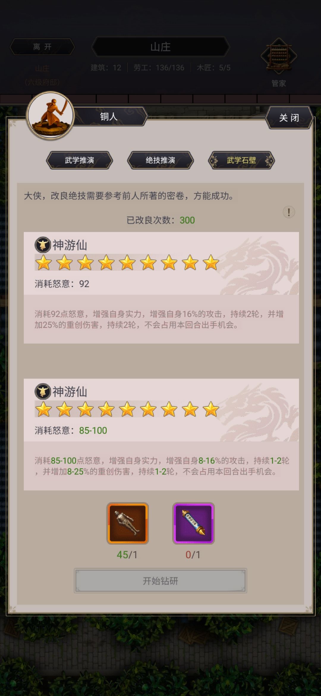 自创武学攻略 大家好,我是如虎添翼服务器的剑修,秋风难相语。今天我刚好弄懂了自创武学,想起来以前根本找不到完整的自创武学的攻略,而且走误区会浪费很多的完整铜人,于是我就想做出这个攻略来给大家使用,希望各位大侠能够少走弯路。 攻略分两部分。 首先是开派的萌新,需要洗髓9,并且有两门自创武学(建议一甲和一乙两个五星被动)。自创需要完整铜人和铜人练习武器,完整铜人可以在每个月8号的江湖驰援中获取,建议大