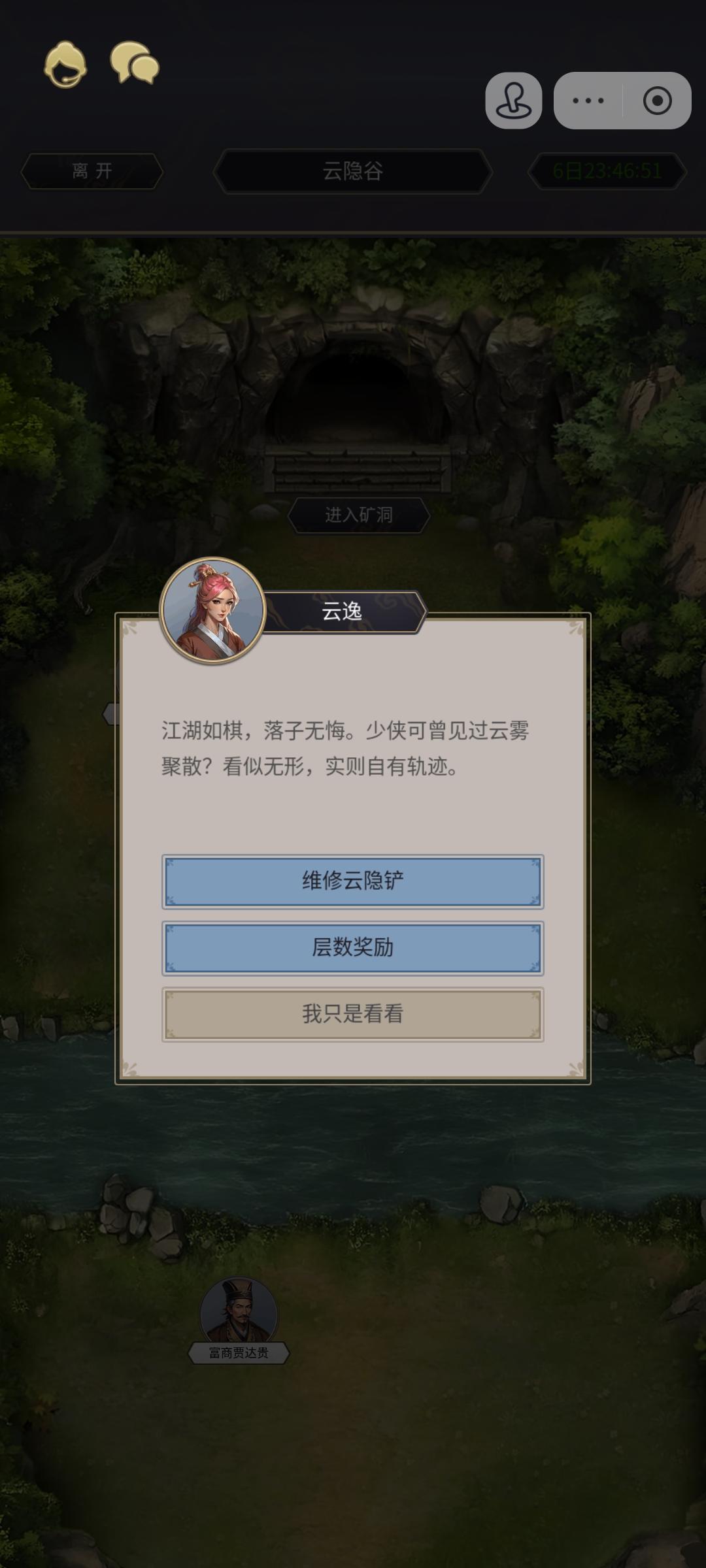 十点前进江湖页面 1.庆余堂巧工阁挂精工(可以开小号刷) 2.庆余堂杂货铺买药材,檀香 3.庆余堂商驿跑马 进入吐纳页面 1.历练 2.领悟道树果子 3.天运符领珠子,开箱 4.发布召集令 进入门派页面 1.领信物 2.议事殿告假(每天都点,防止忘) 3.藏宝阁买八卦 4.比武台次数用完 5.入门殿锻炼 回到江湖页面 1.玄武门买茶叶或马具 2.百晓生居内家祖师买内练材料 3.醉仙楼雅间切磋 4.
