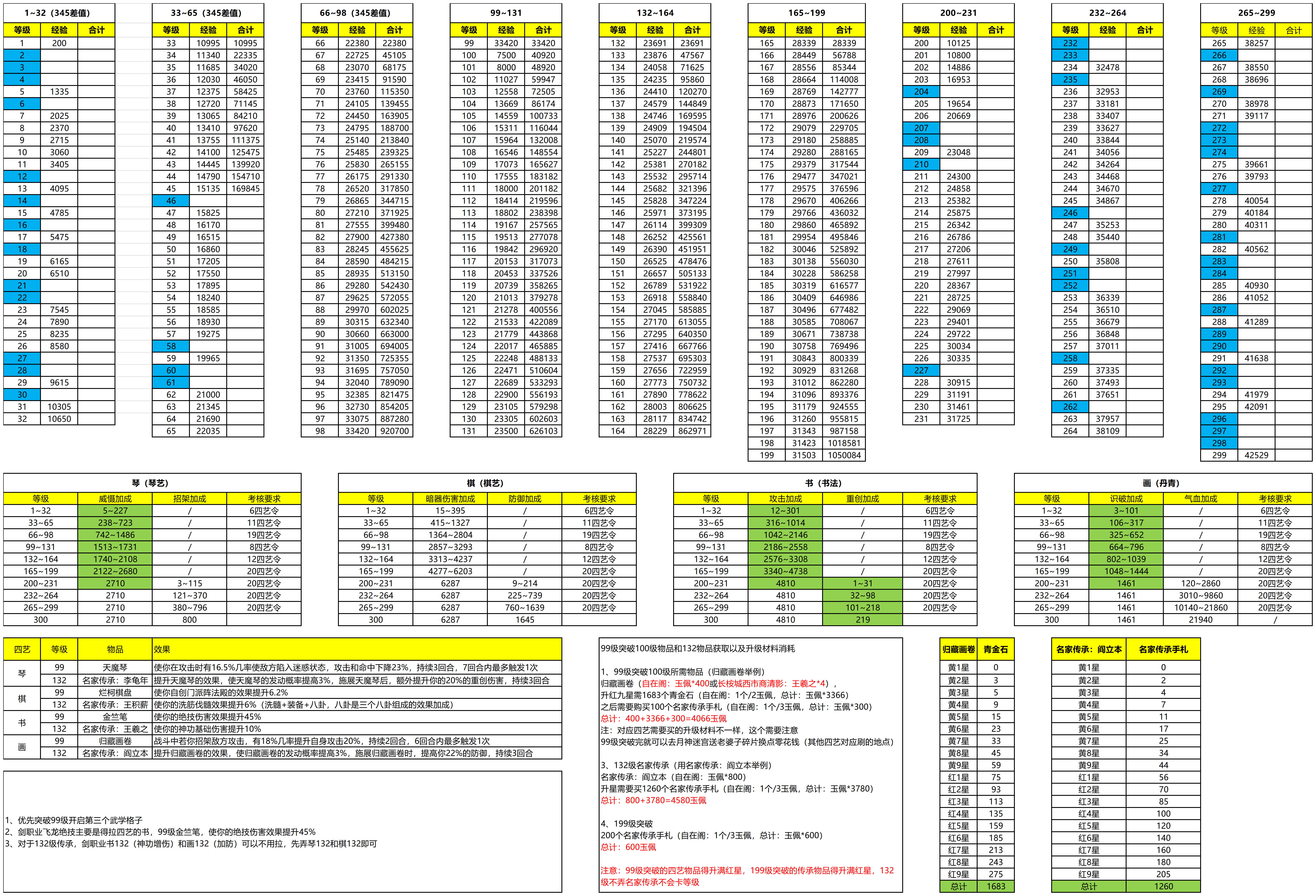 【四艺攻略】经验统计待完善&四艺令消耗&属性&奇珍&传承