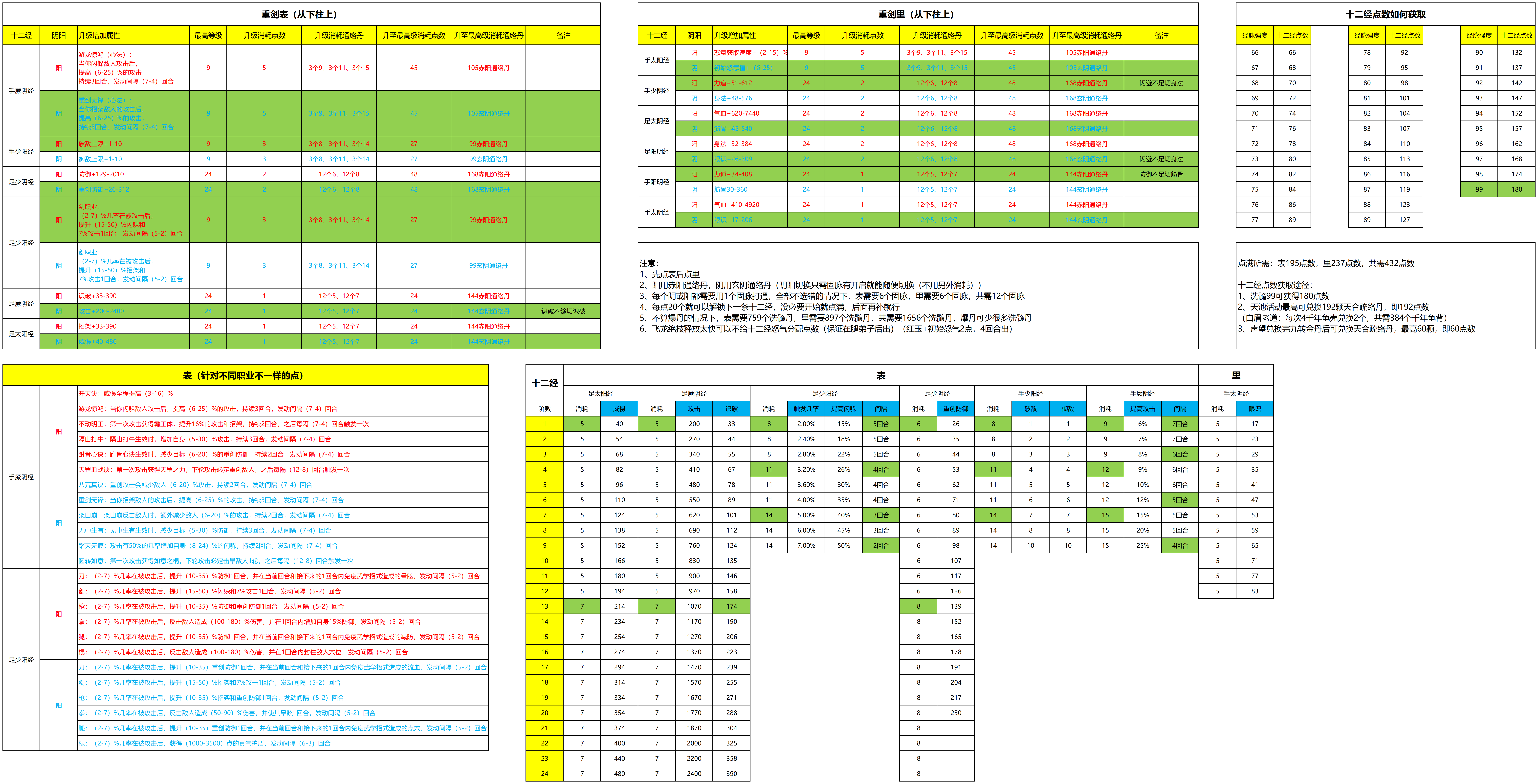 【十二经攻略】各职业属性加成&丹药消耗&剑职业选绿色(待完善)