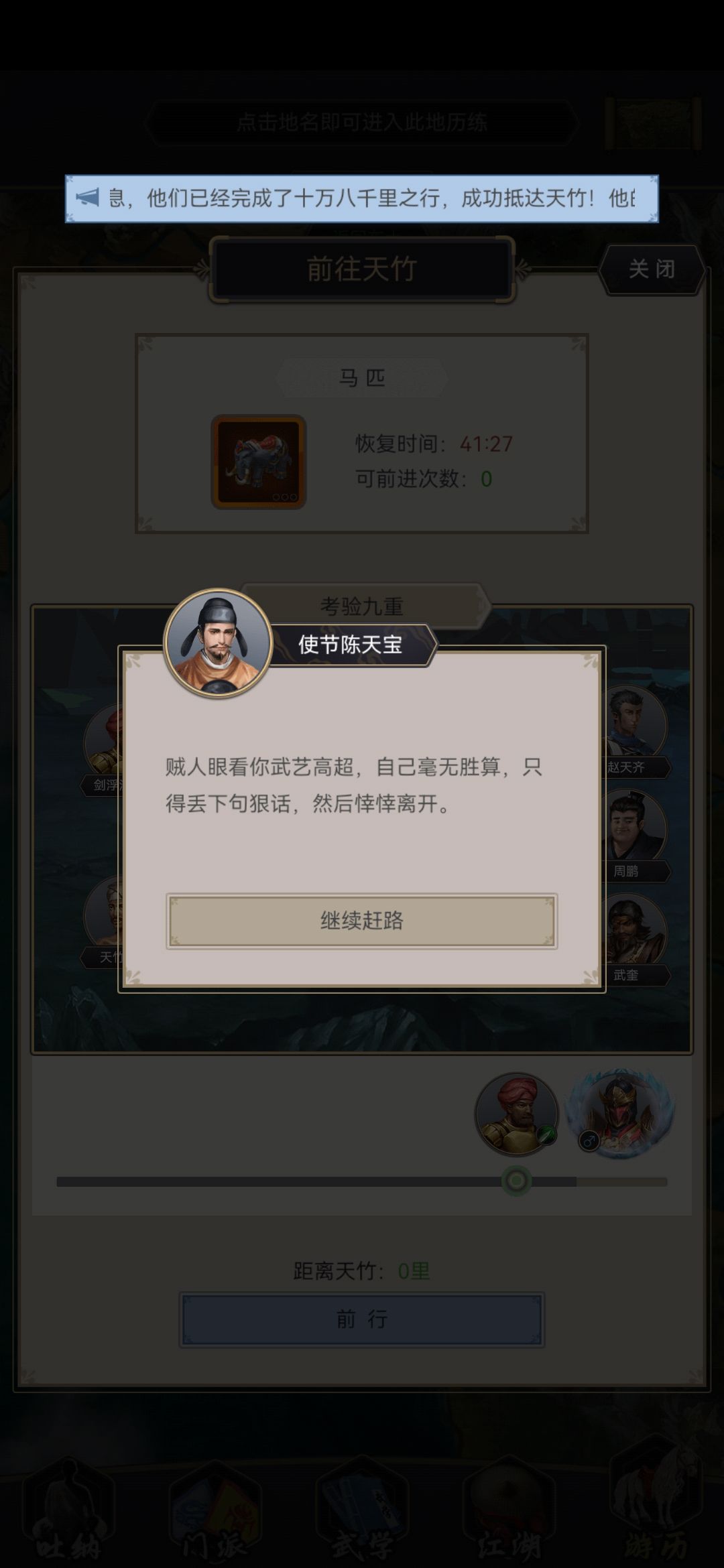 过了高丽之后一路堵过来的,中间小boss也卡了几次,卡怪了就升一升武学熟练度,可以用简注升一升御敌,不用太高,我基本上所有御敌都是3级。