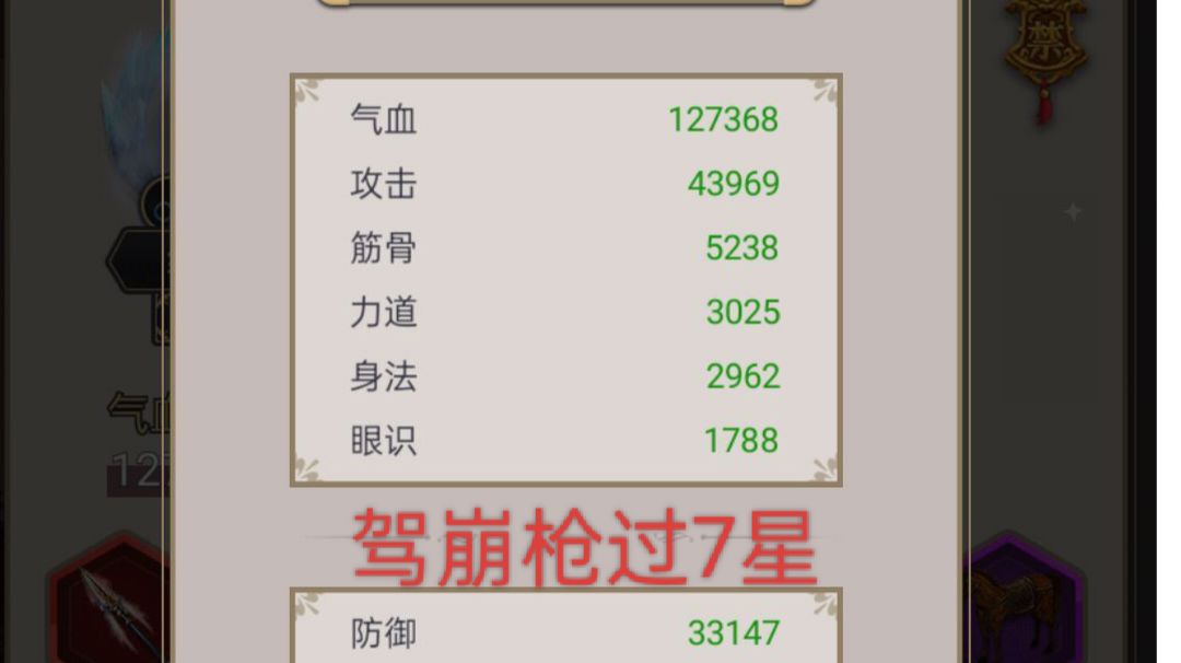 驾崩枪过了八仙之后第二把就过了闫百战,挺惊险,稍微调了下装备的特效属性,属性几乎没变化,看了下没有出地龙,甚至驾崩中间断过一次。因为驾崩叠的快,感觉比八仙好过[表情_捂脸哭],阵法闪避拉满,防御5900,心法二阶精要,钢筋精要,破军套二星,我这属性过的很勉强,建议要把重创拉拉,不然伤害太低,驾崩一断很容易缺伤害。 ps八仙顺序刀拳枪身内棍腿剑,把剑放最后因为我剑御最高。#攻略