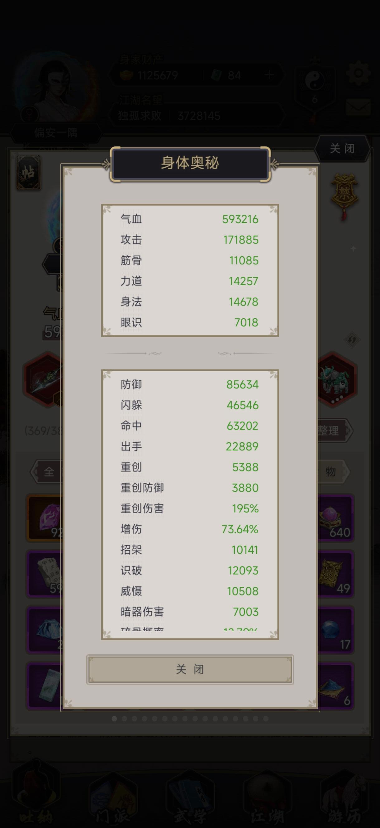 漫长的沉淀啊,四个多月,就差一点就超过我在七星堡的时间了(多亏大活动,几天前刚过八仙的我只能打阎百战半血,然后这两天我把一个7阶眼识和一个7阶力道八卦石升8阶)如今,也正式突破了飞鹰堡这个全是单怪、还需要命中(阮红妆)、还设计上让你走闪避所以相对数值的图,飞鹰堡感觉各个方面都很不适合架山崩,花了两倍时间总算过了。回过头来,再三强调叠甲,我这不是玩法,没有意义,不提倡任何人玩(特别是千万不要卡9