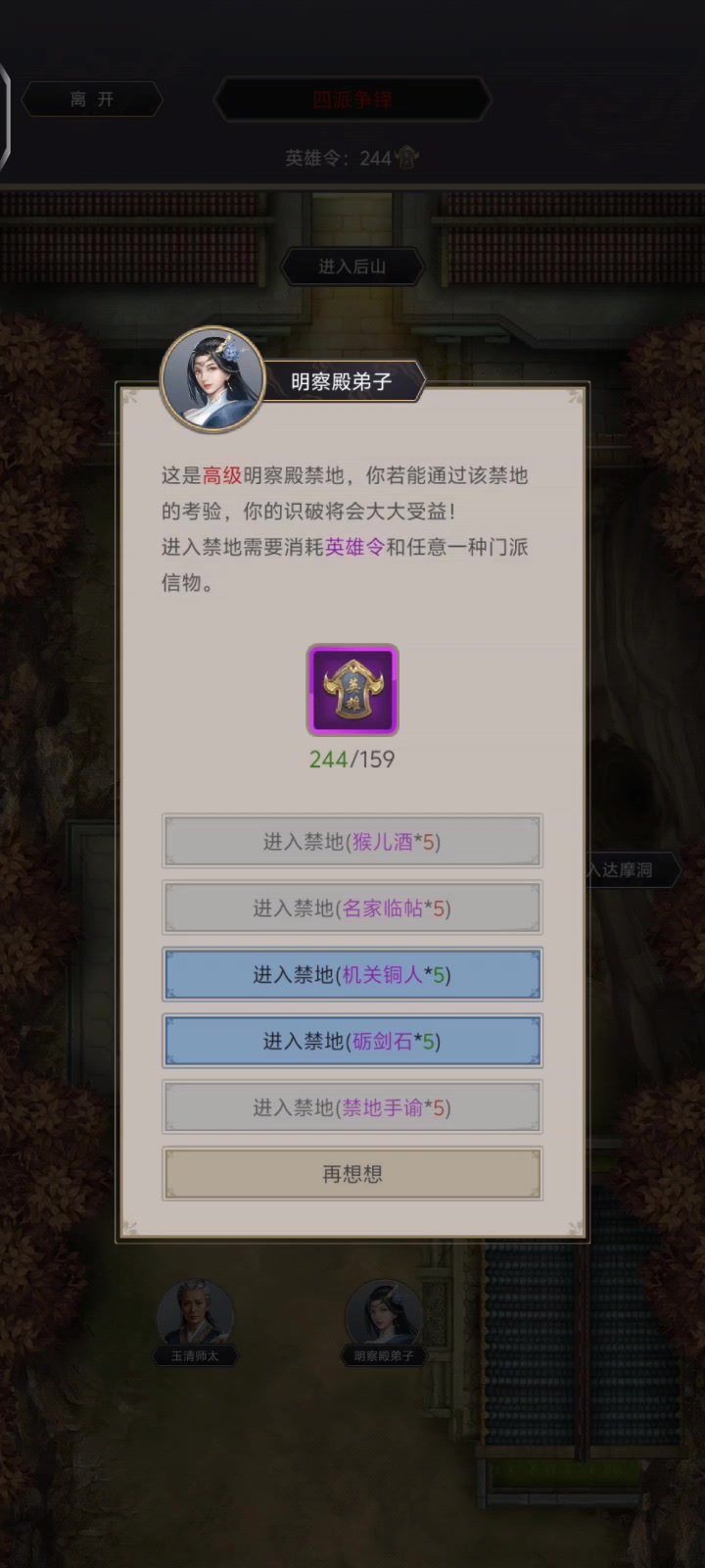 鹤顶叟:签到五天,共3珍珠,10锦盒,3金箱子,27776黄金青囊子:四档奖励兑换玄霜:小游戏,40锦盒,7500黄金百草翁:黄金/玉璧购买锦盒孟云归:武学,真解,精要兑换白嫖可获取40*2+15*5+6*5+40+10=235锦盒第一档,白嫖八星内门+8刀令+2袋简注235-120-13*8-5*2=1锦盒第二档,八星内门+八星外门需240,240-235=5锦盒氪6玉璧第
