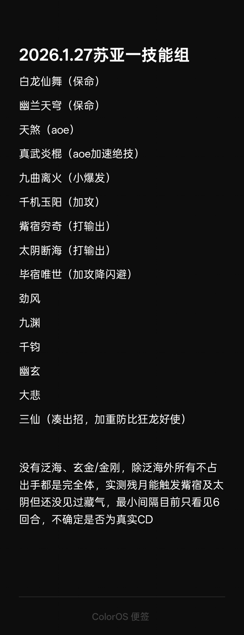 每月开的时候基本不需要设置技能。腿只用一套技能,剑只用一套技能,自动保存在各自技能组内。每月开打的时候只要选弟子就行,不需要重设技能组。腿打完1、2关,只要交换1、3两个技能就可以打完3、4、5、6关。下个月打的时候也只换一次这两技能。剑的技能组,觉得不好用的话,可自行替换成的其它的。
