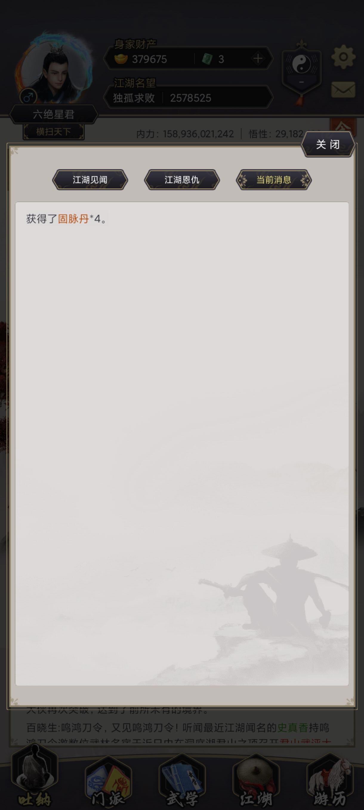 鹤顶叟:签到五天,共3珍珠,10锦盒,3金箱子,27776黄金青囊子:四档奖励兑换玄霜:小游戏,40锦盒,7500黄金百草翁:黄金/玉璧购买锦盒孟云归:武学,真解,精要兑换白嫖可获取40*2+15*5+6*5+40+10=235锦盒第一档,白嫖八星内门+8刀令+2袋简注235-120-13*8-5*2=1锦盒第二档,八星内门+八星外门需240,240-235=5锦盒氪6玉璧第