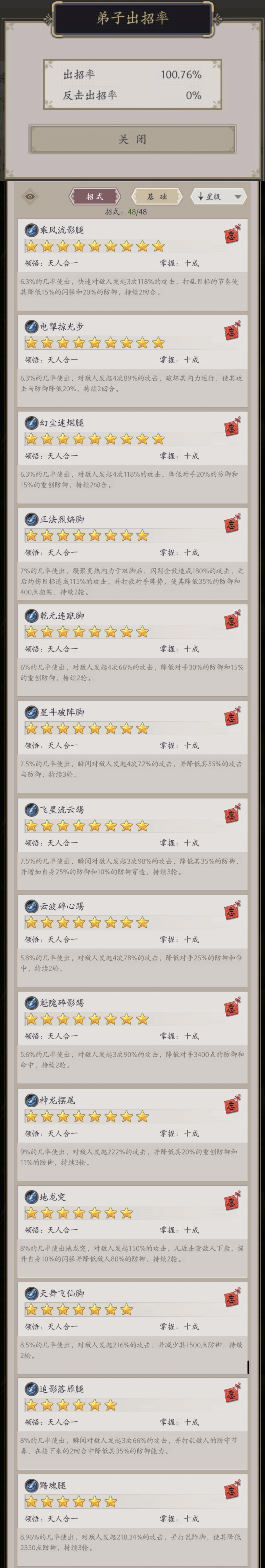 正文会稍长,因为我截的长图,方便观看腿弟子:拳弟子:棍弟子:枪弟子:刀弟子:剑弟子:剑我还在学个嘲风,过两天换源补上有什么疑问可以评论区询问,其他职业的庆典九星因为价格高,我不会考虑给弟子兑换,量力而行