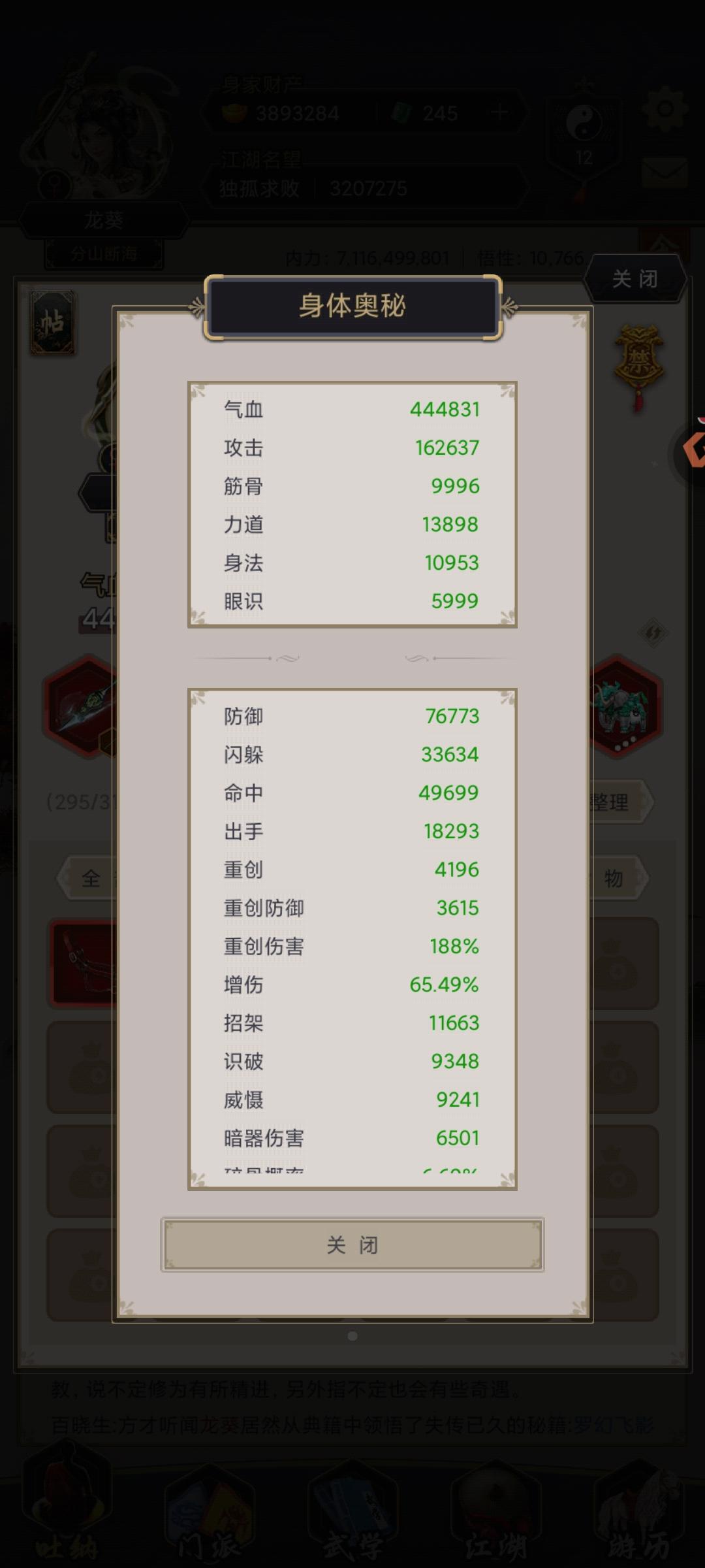 漫长的沉淀啊,四个多月,就差一点就超过我在七星堡的时间了(多亏大活动,几天前刚过八仙的我只能打阎百战半血,然后这两天我把一个7阶眼识和一个7阶力道八卦石升8阶)如今,也正式突破了飞鹰堡这个全是单怪、还需要命中(阮红妆)、还设计上让你走闪避所以相对数值的图,飞鹰堡感觉各个方面都很不适合架山崩,花了两倍时间总算过了。回过头来,再三强调叠甲,我这不是玩法,没有意义,不提倡任何人玩(特别是千万不要卡9