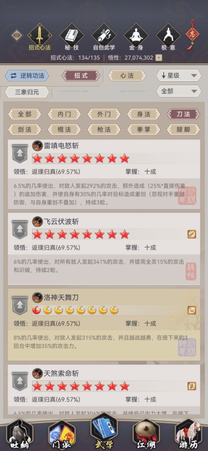 现在九星刀法越来越多,剩下的八星主动刀法要开始扔了,请帮忙看看哪几个可以优先扔,还剩下如下几门八星主动:雷刀,洛神,飞云,天煞,舍离,天机,赤龙,血舞,云波,乾元#这就是江湖