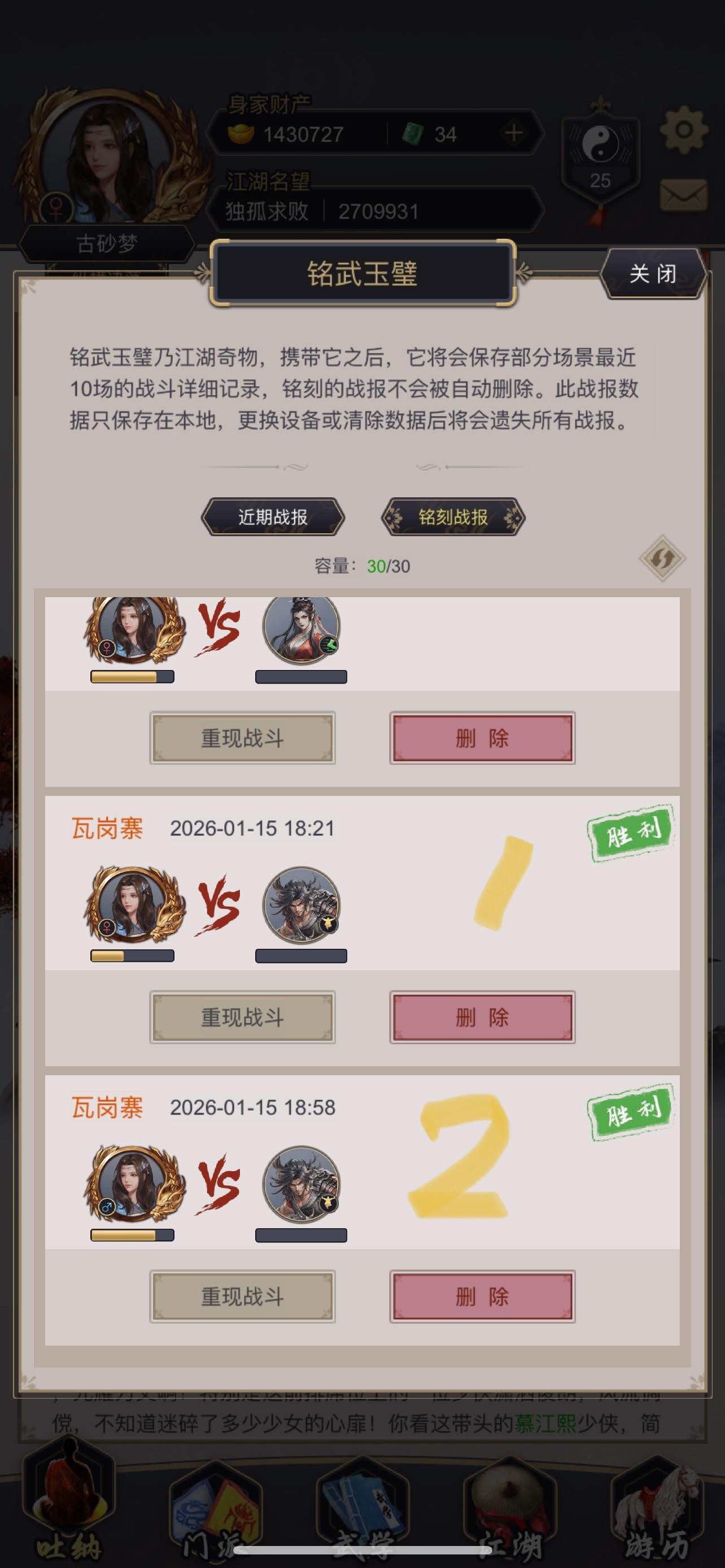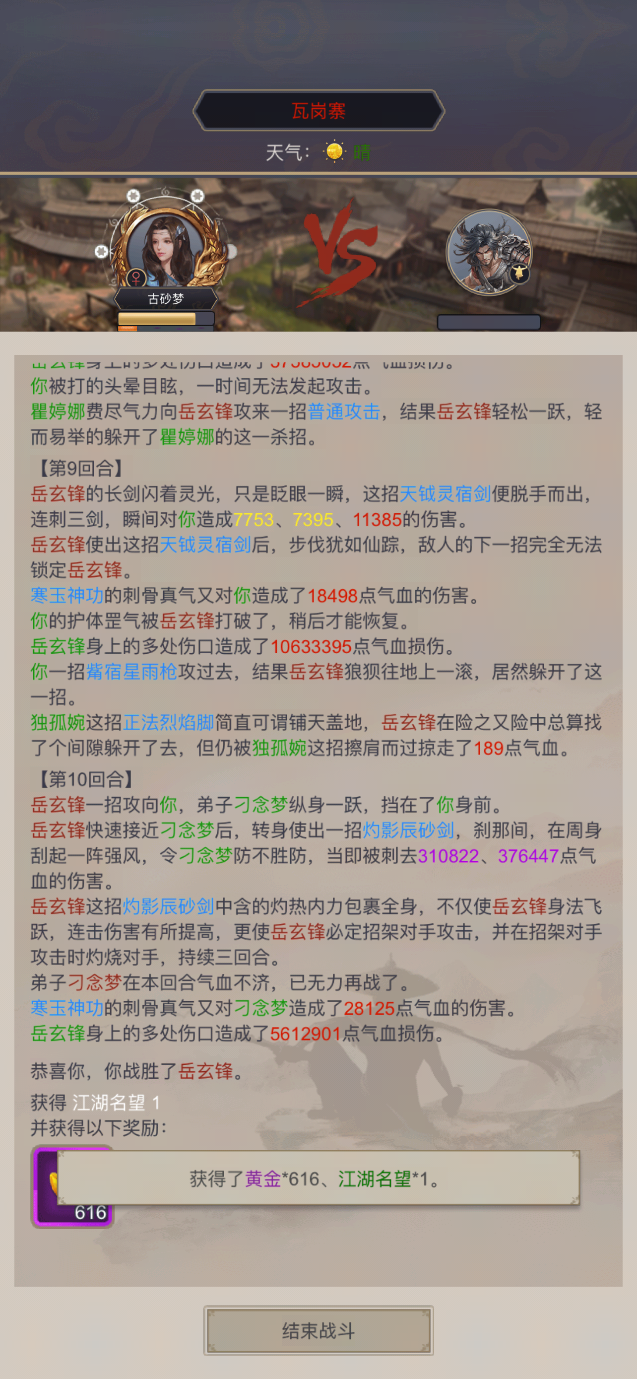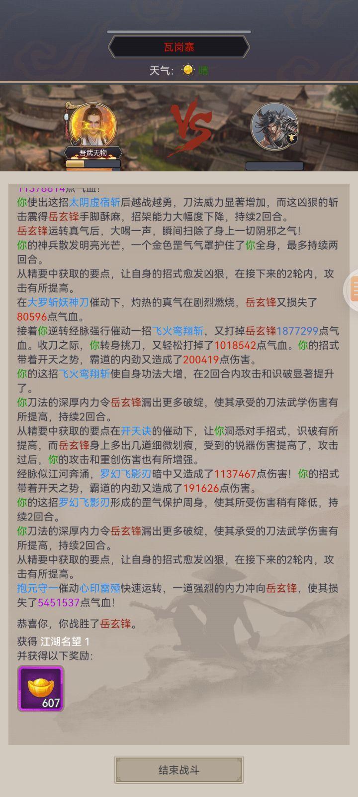 昨天rp爆发赌过3人组,据说岳玄锋已经被改成了瓦岗0.7版,过3人组就能过瓦1,过瓦1就能过瓦2。昨天没精力了,且今天才能把封穴心印升到12级,介于自身命中6w1过于低了,决定今天晴天开赌,5次过1阶段,10次过2阶段。佬诚不欺我。先赞扬一句:改版太一护元决天下无敌!开局保护暖机3回合,4-6回合固定高质量爆发buff,高度契合其他爆发点。没有护元我会开局残血,4-6回合更没有如此高爆发,多3