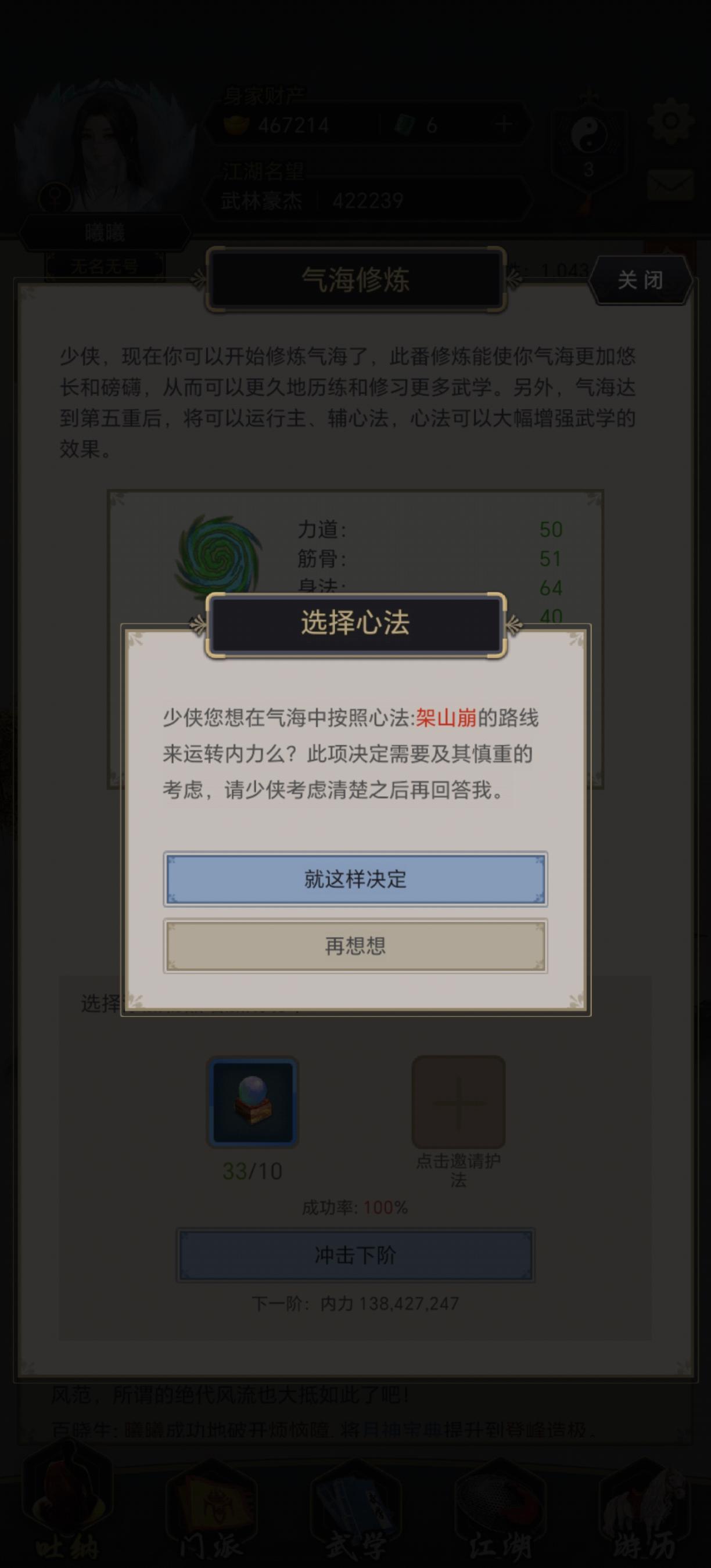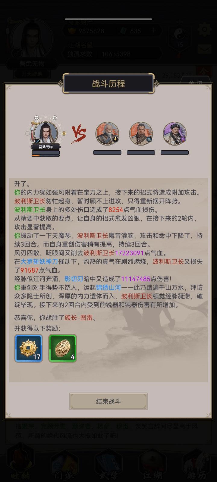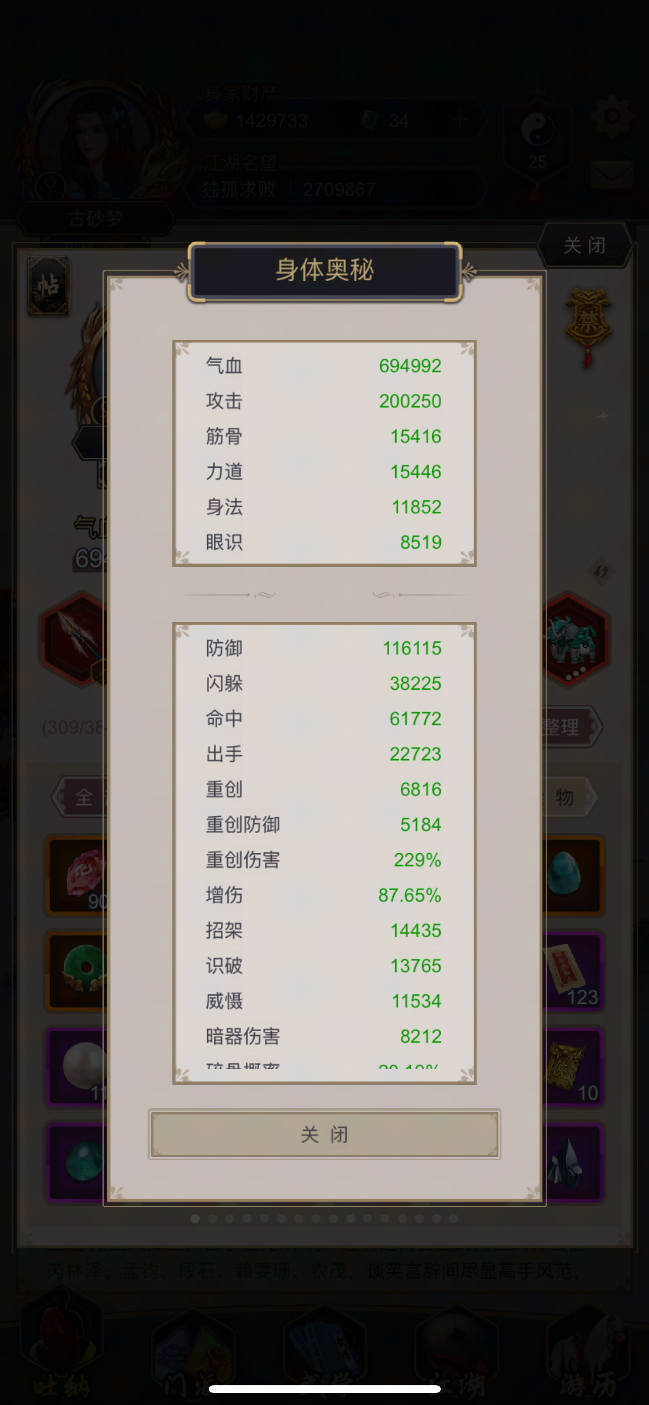 昨天rp爆发赌过3人组,据说岳玄锋已经被改成了瓦岗0.7版,过3人组就能过瓦1,过瓦1就能过瓦2。昨天没精力了,且今天才能把封穴心印升到12级,介于自身命中6w1过于低了,决定今天晴天开赌,5次过1阶段,10次过2阶段。佬诚不欺我。先赞扬一句:改版太一护元决天下无敌!开局保护暖机3回合,4-6回合固定高质量爆发buff,高度契合其他爆发点。没有护元我会开局残血,4-6回合更没有如此高爆发,多3