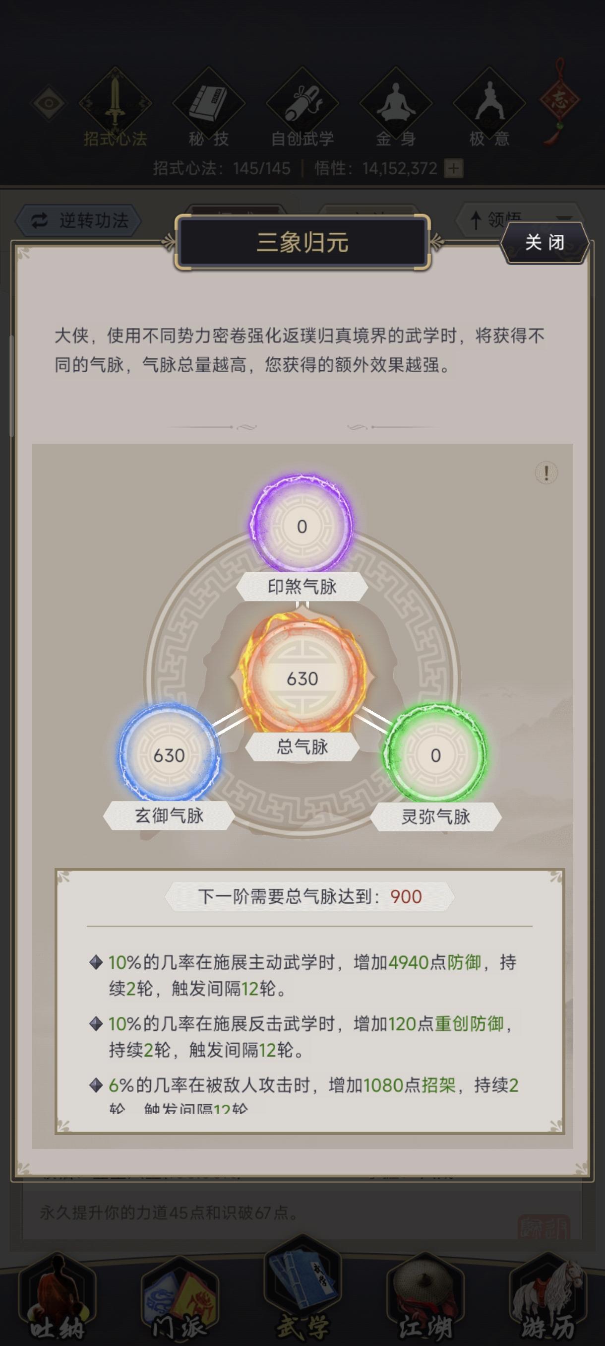 昨天rp爆发赌过3人组,据说岳玄锋已经被改成了瓦岗0.7版,过3人组就能过瓦1,过瓦1就能过瓦2。昨天没精力了,且今天才能把封穴心印升到12级,介于自身命中6w1过于低了,决定今天晴天开赌,5次过1阶段,10次过2阶段。佬诚不欺我。先赞扬一句:改版太一护元决天下无敌!开局保护暖机3回合,4-6回合固定高质量爆发buff,高度契合其他爆发点。没有护元我会开局残血,4-6回合更没有如此高爆发,多3