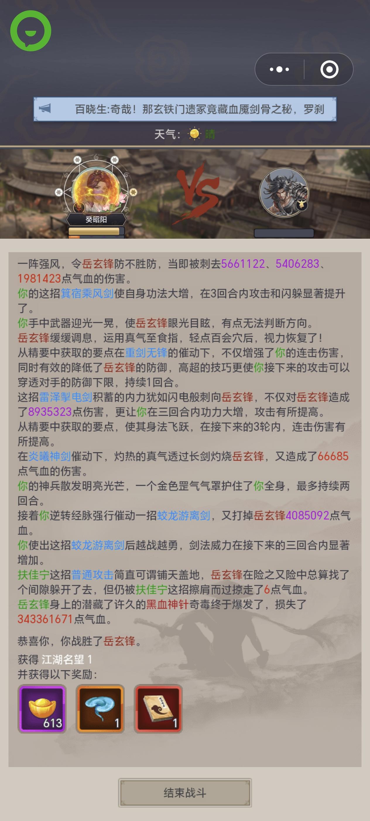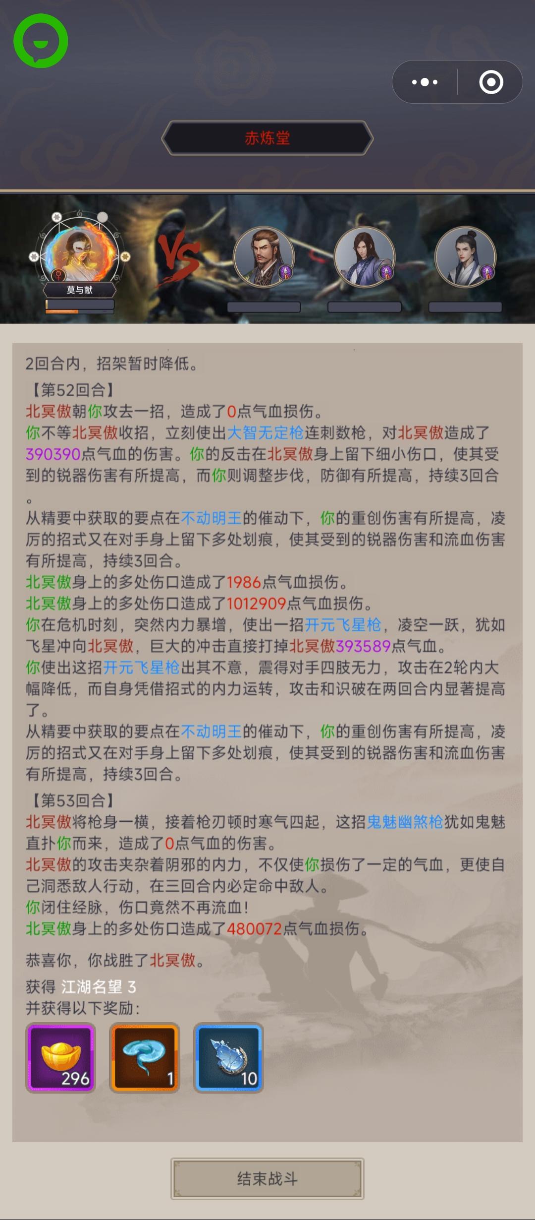 五人组卡老久了,今天一口气从五人组推完。打完五人和段云珠想着先试试北冥傲,再出去换锐减八卦和外挂腿,居然丝血过了,还想着明天千香园满级了,开始洗笛子的,可喜可贺。