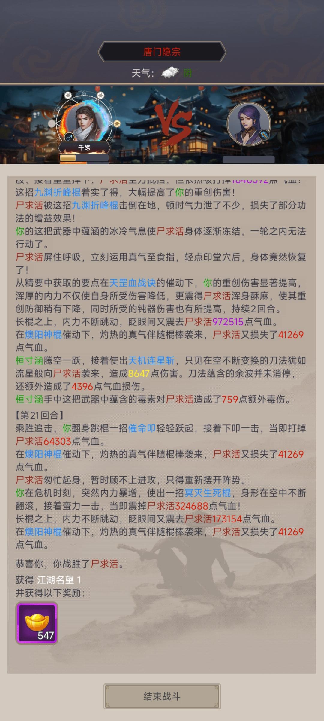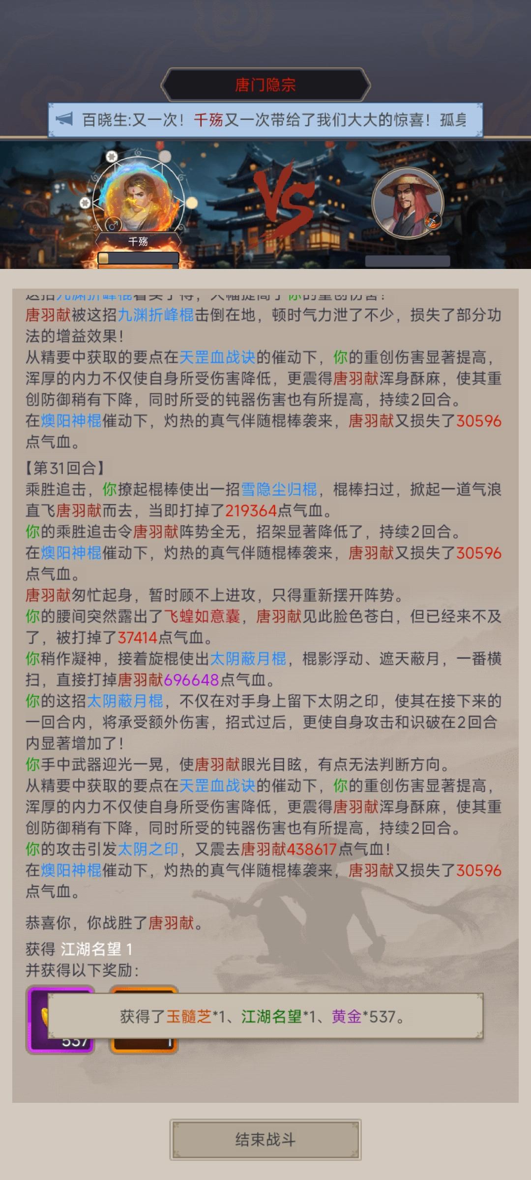 之前梭哈了几次断天涯,始终过不去。经过好几天的绝食攒黄金,养了养弟子,一下就过去了。不知道还能走多久,但还是感谢朋友们的陪伴。