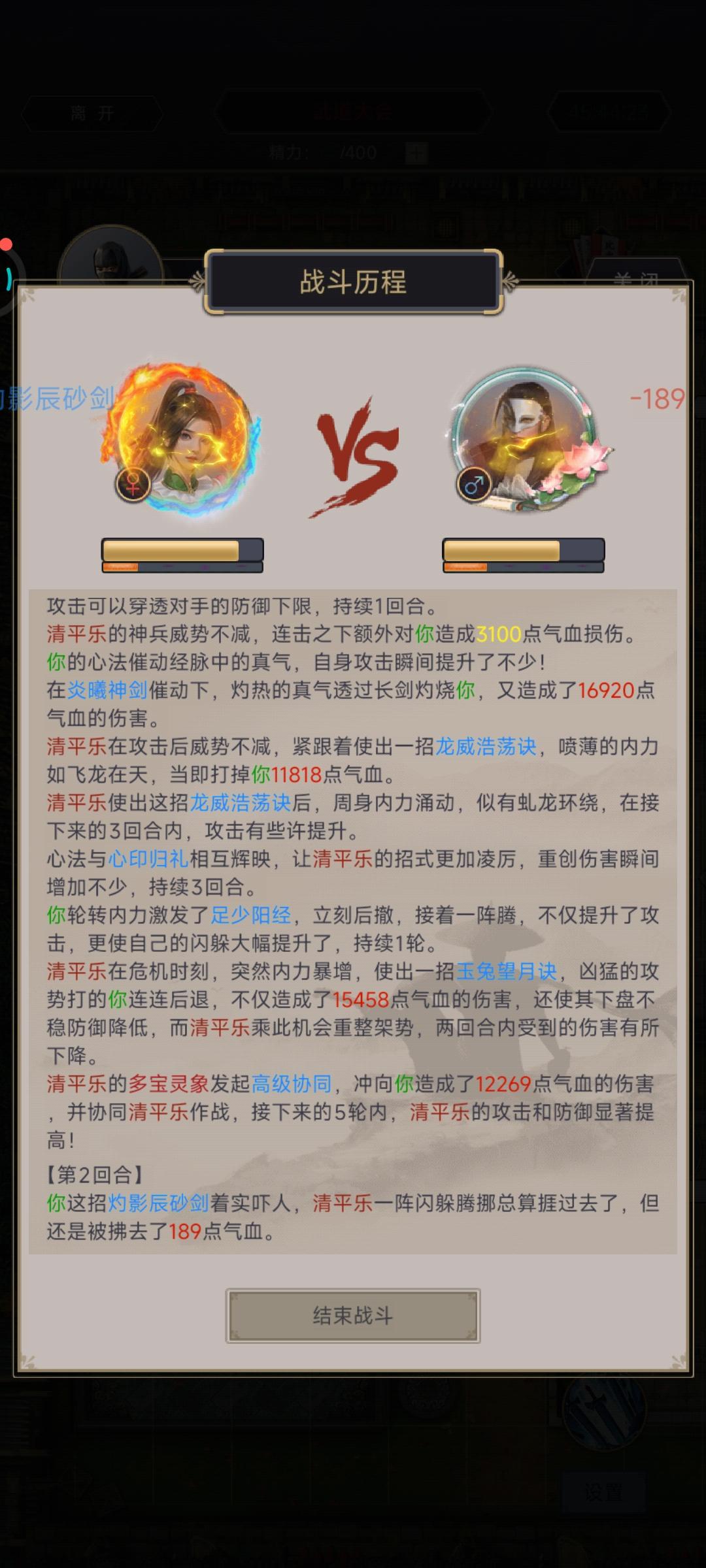 武道大会,点击结束战斗,有几率卡死在这个页面