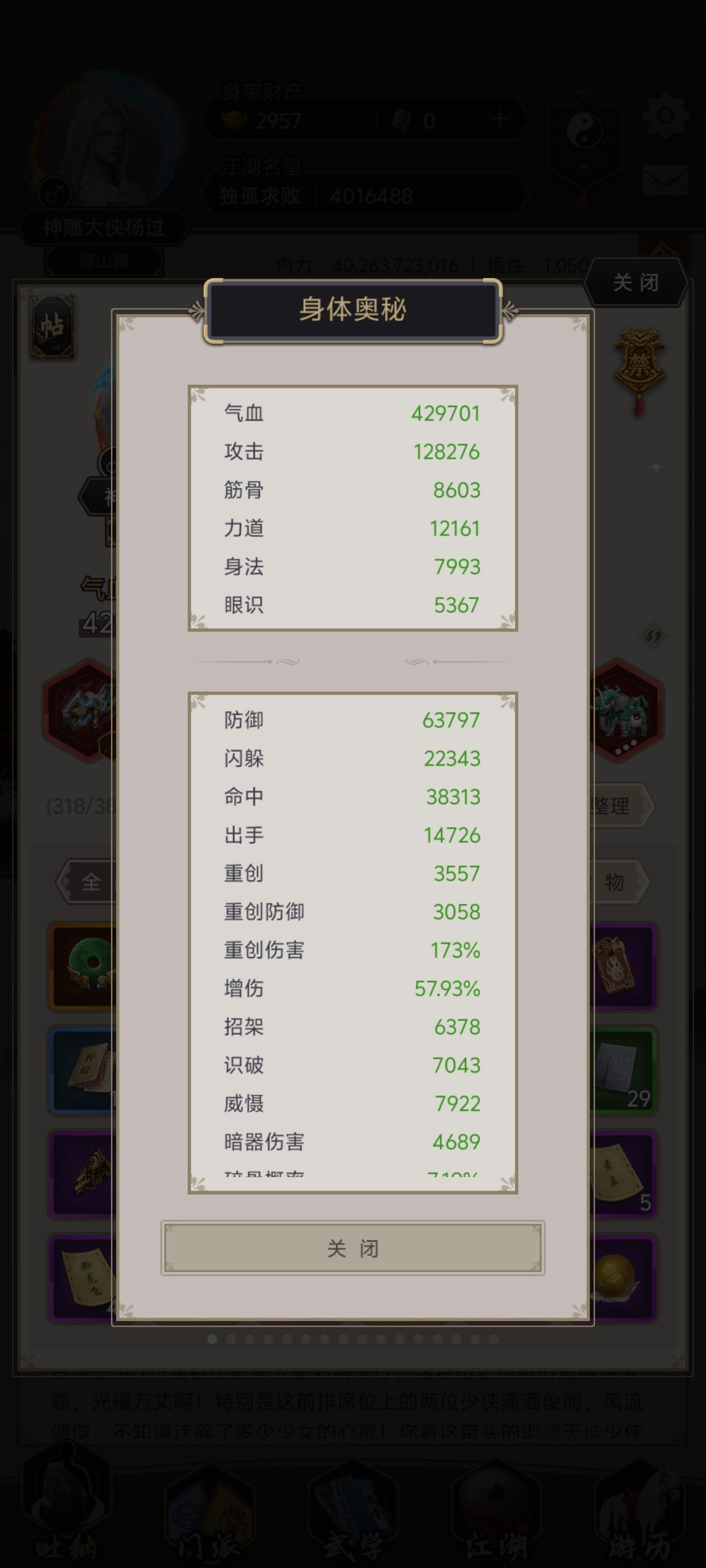 漫长的沉淀啊,四个多月,就差一点就超过我在七星堡的时间了(多亏大活动,几天前刚过八仙的我只能打阎百战半血,然后这两天我把一个7阶眼识和一个7阶力道八卦石升8阶)如今,也正式突破了飞鹰堡这个全是单怪、还需要命中(阮红妆)、还设计上让你走闪避所以相对数值的图,飞鹰堡感觉各个方面都很不适合架山崩,花了两倍时间总算过了。回过头来,再三强调叠甲,我这不是玩法,没有意义,不提倡任何人玩(特别是千万不要卡9