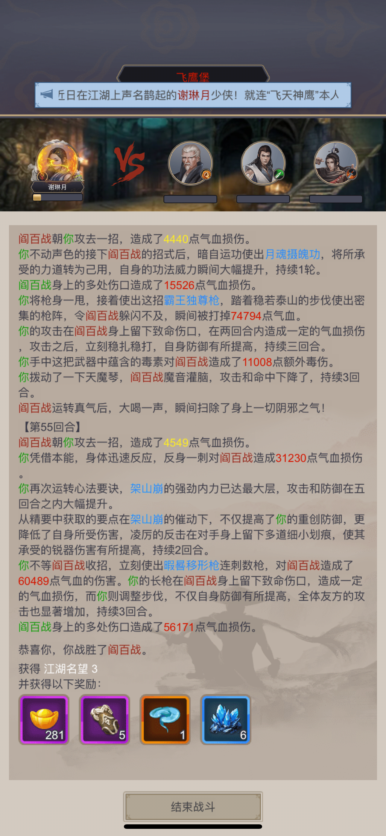 漫长的沉淀啊,四个多月,就差一点就超过我在七星堡的时间了(多亏大活动,几天前刚过八仙的我只能打阎百战半血,然后这两天我把一个7阶眼识和一个7阶力道八卦石升8阶)如今,也正式突破了飞鹰堡这个全是单怪、还需要命中(阮红妆)、还设计上让你走闪所以相对数值的图,飞鹰堡有一种各个方面都很不适合架山崩的感觉,花了两倍时间总算过了。回过头来,再三强调叠甲,我这不是玩法,没有意义,不提倡任何人玩(特别是千万不