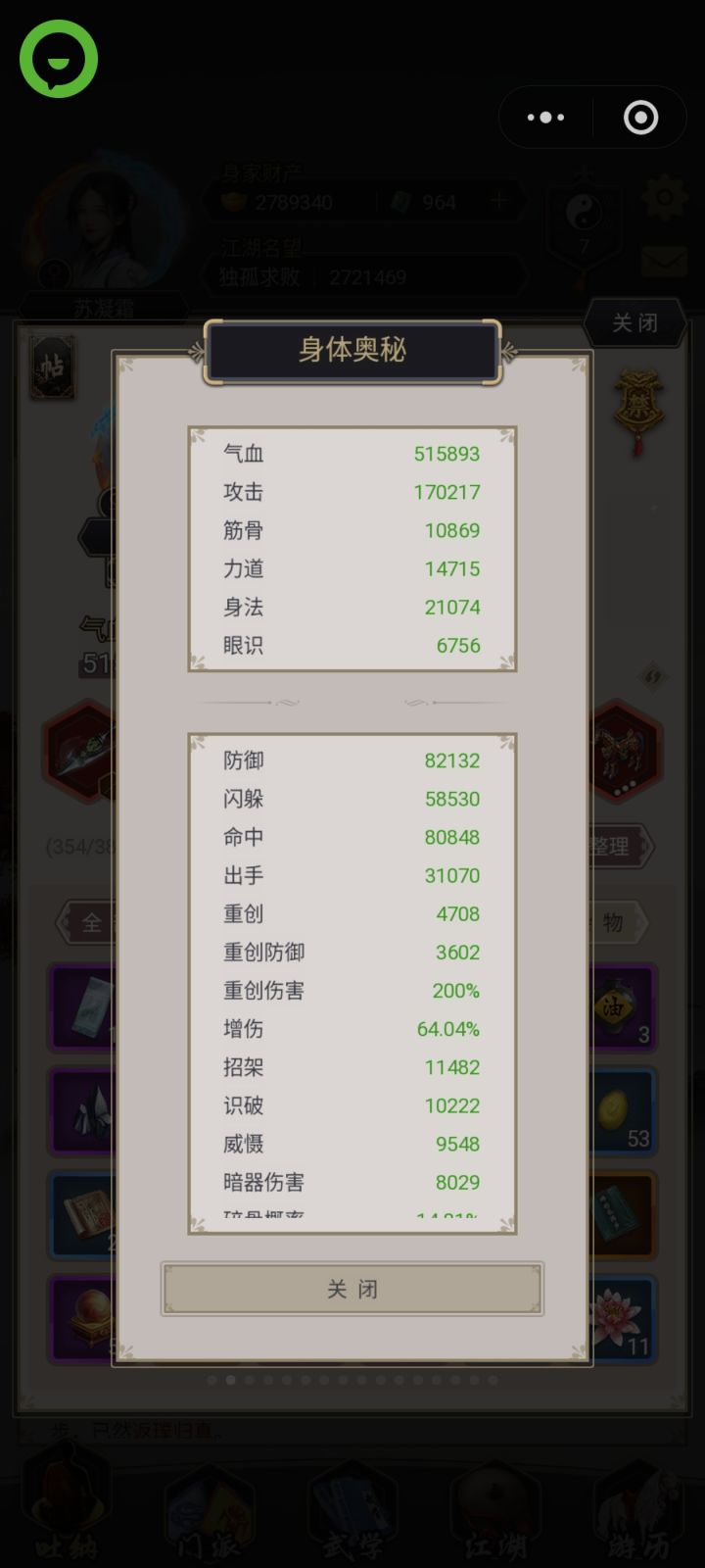 沉淀两个月,天罡力破终过唐门隐宗,属性无参考价值 ,纯记录。