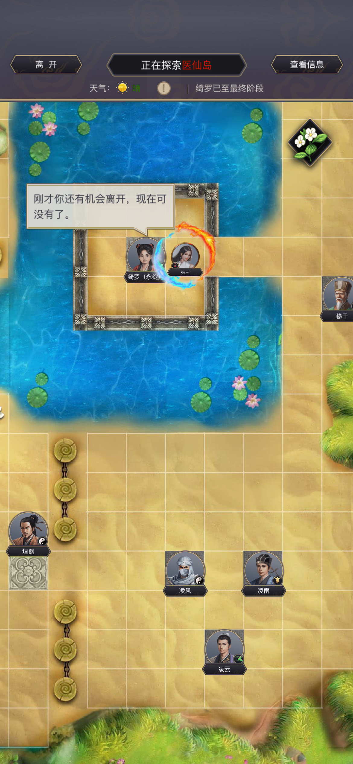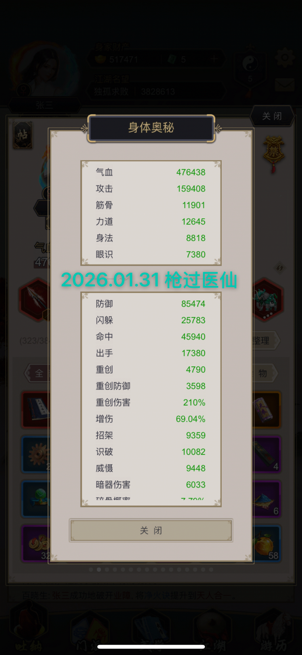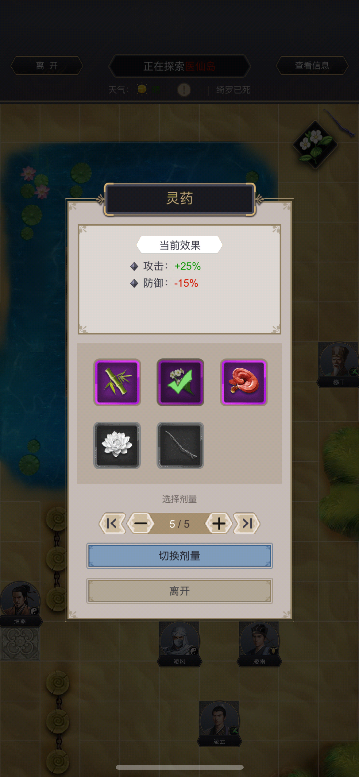 计划到 5000重创 3650重防 做出钩子 再赌(目前暗劲786 横炼615)没忍住 但运气好 过了开始安心养弟子 狠狠补课医仙思路:没掌握到太多技巧 只能多提提特殊属性小怪一个个打过去 打不过的吃左上角攻击药赌赌看boss建议打三阶段绮罗过图情况:晴天 飞蝗 攻击药+25%心印点穴非常好使~终于给这些怪点回来了