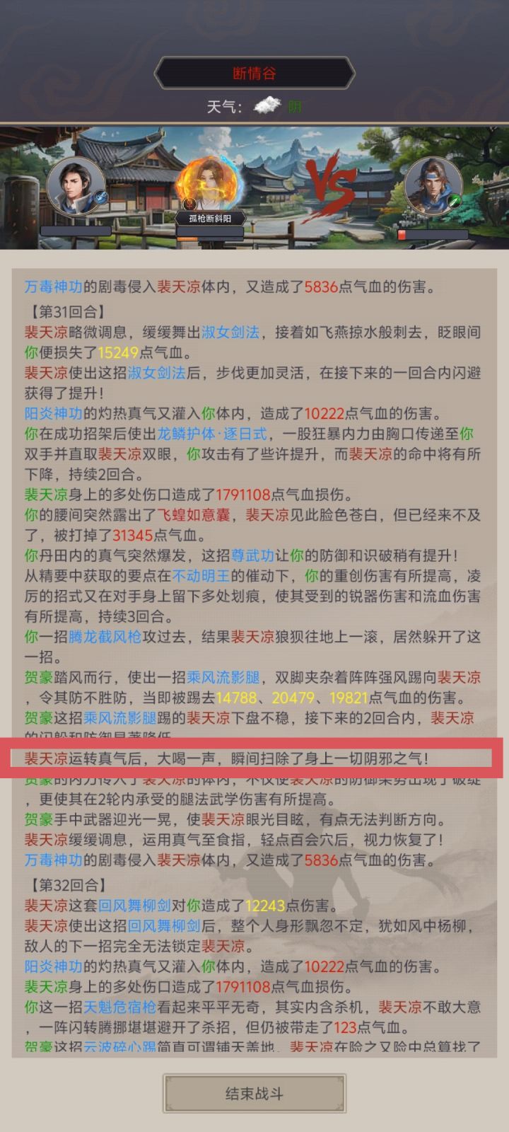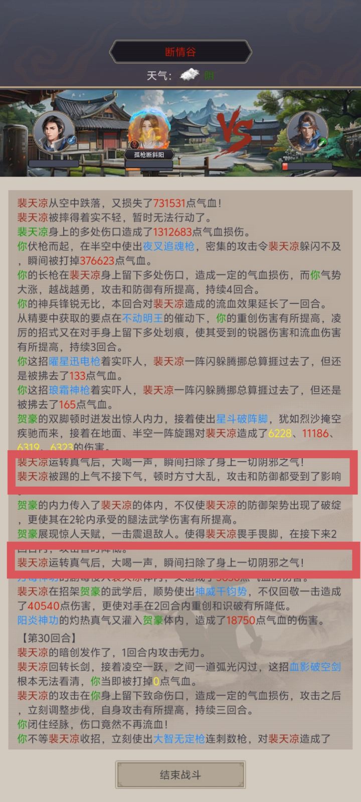 一点负面状态不吃,一个枪不让叠流血,神兵,冰冻效果等于没有,降攻击buff等于没有,属性不过,直伤不够就打不了一点。666游戏做的真棒!那你告诉我,我刷神兵的意义在哪里?弟子天赋的意义在哪里?不说了,一把接近40回合左右,请看图片有的我都懒得截图了。。。剩下的图片还传不上去,最多传18张。。。破游戏真好玩。