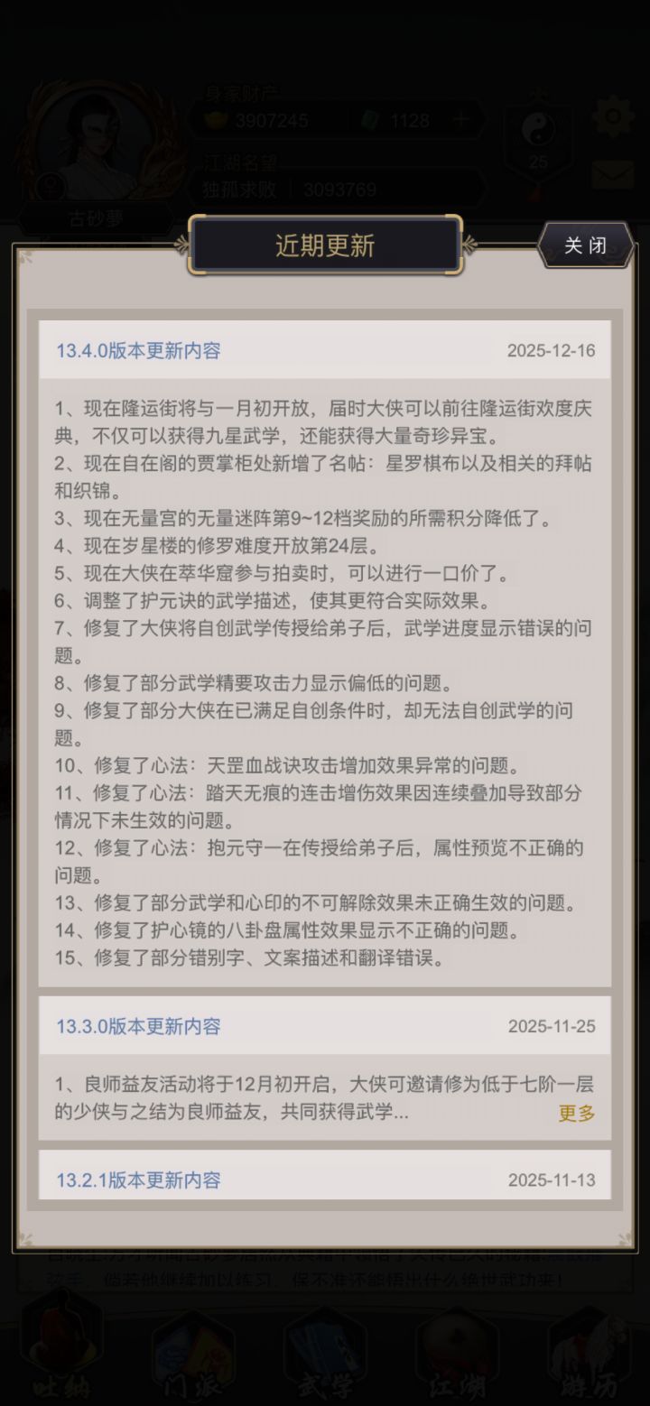 换新策划以来,花样百出,确实有些想法,且有一步步解决遗留的迹象。但从近期新出武学来看,我却认为花了招式,失了武德。举2个例子:旧的先说,护元决:之前武学明确指出“开局”触发,氪满之后发现无论是否真解都是自身出手时触发,屡次建议后,这次更新搞笑的来的,说让文字描述符合武学,意思错的是文字不是本体。不说很多玩家认为武学弱建议修改,符合描述改成开局生效的代码特别难么?最后,我认为开局生效对我很有