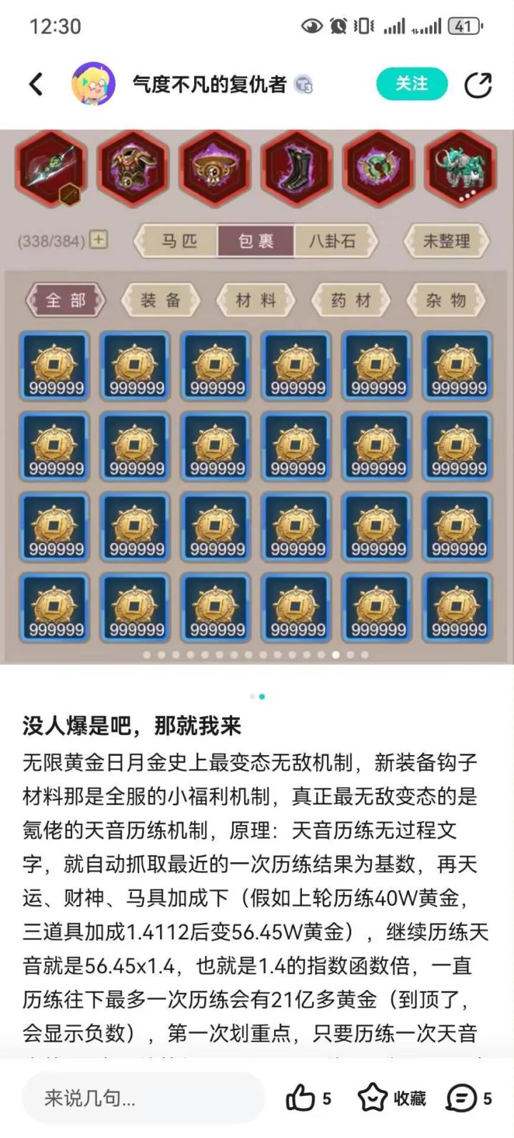 就问一下,你们到底想干什么,一个装备不氪一两年才能升满,几千万黄金,这不就纯纯是逼氪吗,吃相简直太难看了吧,从未见过这么难看的吃相,,要求削减价格,加数量,缩短打磨时间,开通黄金兑换日月金渠道#这就是江湖