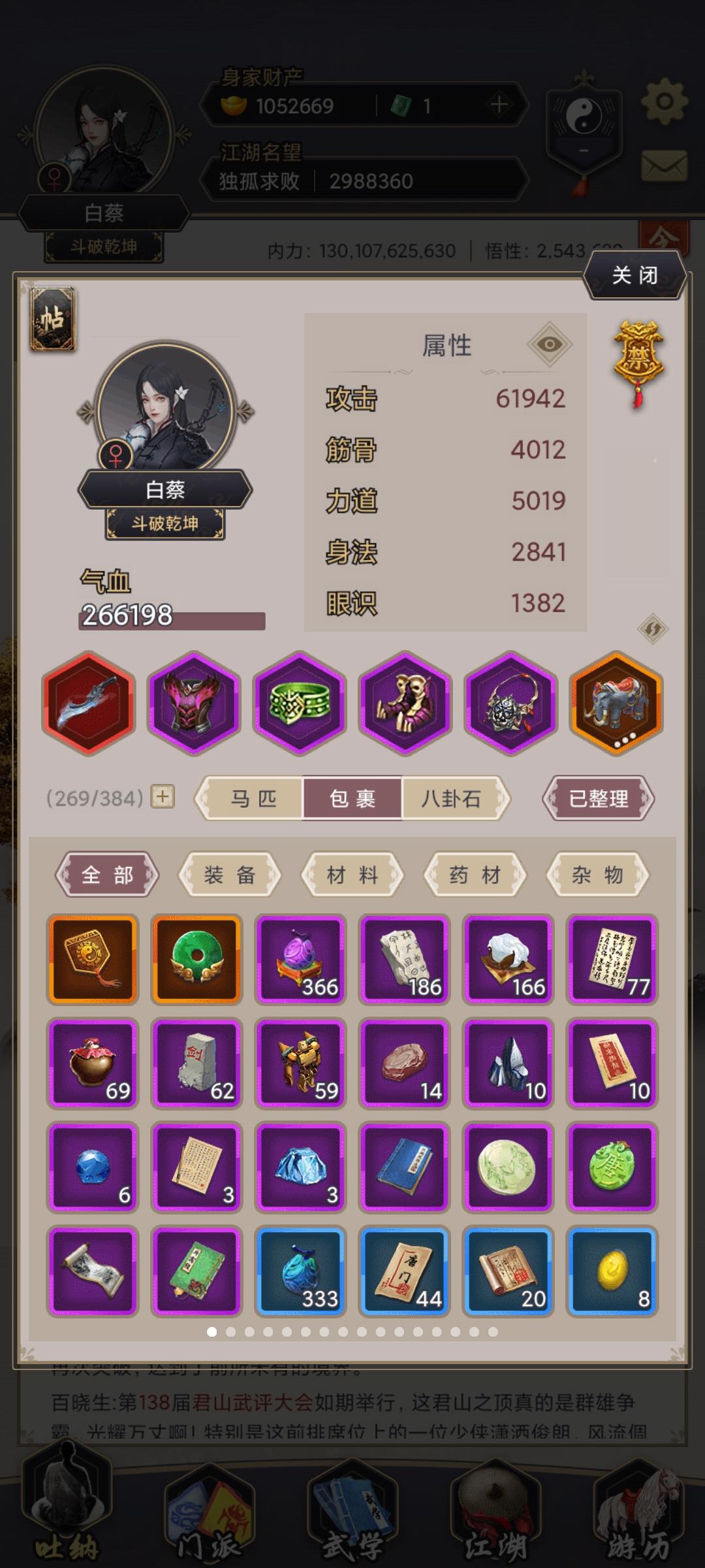 鹤顶叟:签到五天,共3珍珠,10锦盒,3金箱子,27776黄金青囊子:四档奖励兑换玄霜:小游戏,40锦盒,7500黄金百草翁:黄金/玉璧购买锦盒孟云归:武学,真解,精要兑换白嫖可获取40*2+15*5+6*5+40+10=235锦盒第一档,白嫖八星内门+8刀令+2袋简注235-120-13*8-5*2=1锦盒第二档,八星内门+八星外门需240,240-235=5锦盒氪6玉璧第