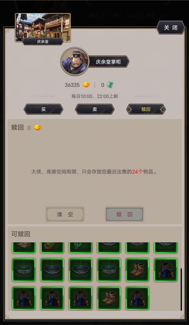 今天原本想把游历的收益拿到,但装备太多了,我背包不够了,取不了邮仟,我也不想再买个包,就想把包里的东西放到庆余堂卖了,结果眼睛太瞎了,没看到只能放24个。结果完了!好多东西没了,我又是零氪,没钱买八卦天运符,回溯不了。😭😭😭