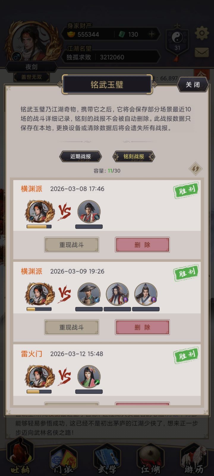 大约是25年2月底建号,迷迷糊糊玩到五月份才加群,记得加群时候还没开始西游,6月19进入七星见识2周目,7月19过七星,8月9过125,9月1过武穆,9月23过飞鹰,10月10过青衣,10月29过镖局,11月19过百花,12月2过赤炼,12月31过横渊,1月3过雷火,2月17过唐门、藏剑,2月28过医仙。过图运气应该算不错,除了三尸赌的次数多,其他的图基本运气都不错,地龙接的技能不错,控制也在关键