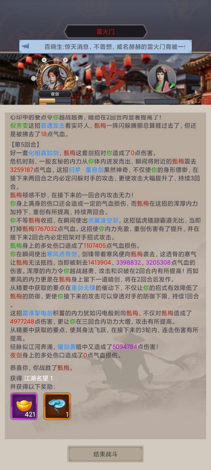 2月24日过藏剑,2月28日过医仙。逐风重剑,雷天,14.2万攻,7回合。
