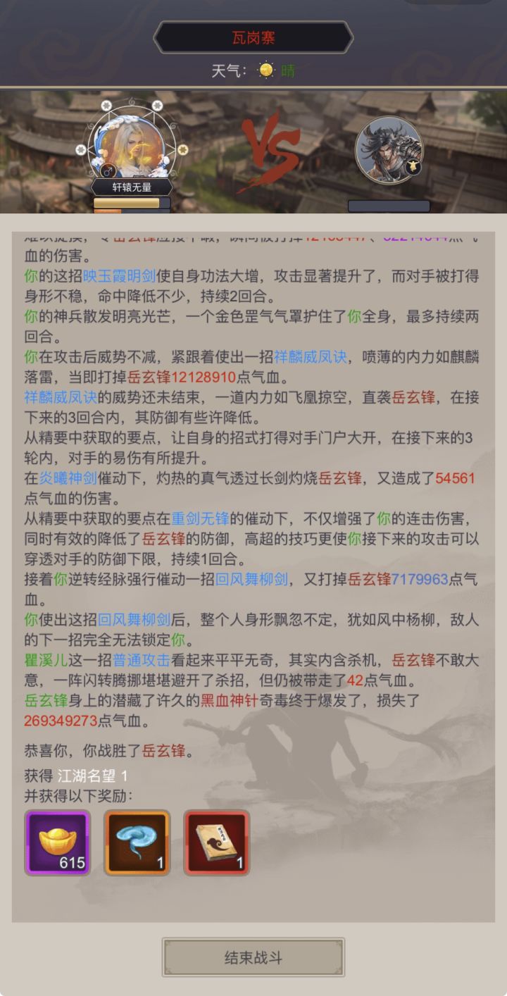 阴天赌了10多次,逆行二十六阶十层,洗髓86,中丹田三十四阶,99格子,拳御17,枪御39,断潮崖枪伤害减少百分之一,神兵差3个月亮3阶。3个9主,九鼎,金阙,帝星,唐们两个9被都有,有名刀,中间退过一段时间,过关是闪了一次,加晕了一次,最后为赤子的加成+地龙+太清+斗魂+飞云(满红星)打了100W的伤害也是我第一次打超过100W的#这就是江湖