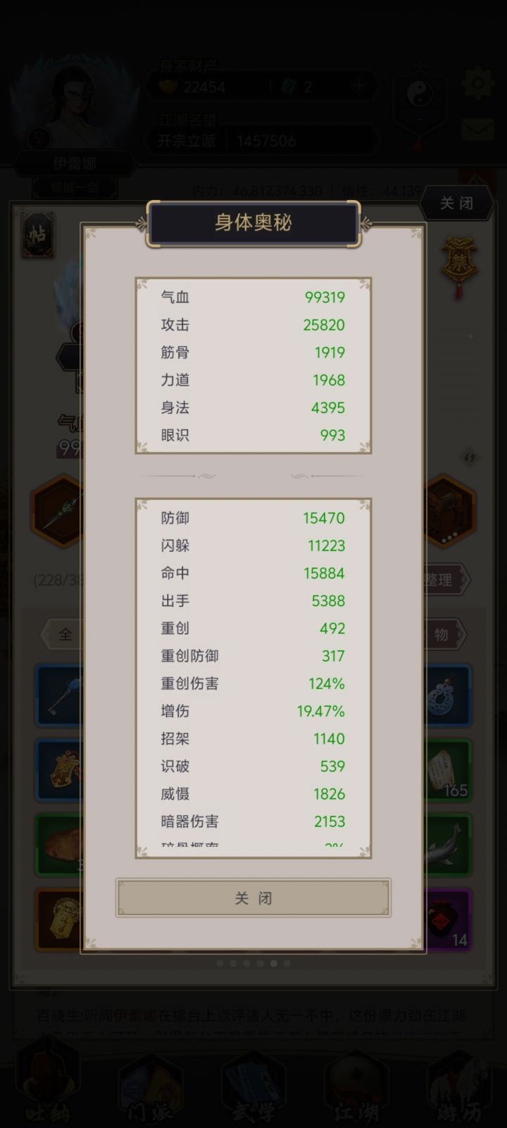 兄弟们,玩这个游戏很久了,纯小白入坑,一直当休闲玩,不氪金,慢慢磨。现在是身法剑,洗髓65级,身法8549,卡在七星堡第一个BOSS司空虎这里,十二正经开不了。我知道打赢他才能拿《斗宿经》解锁正经,也知道身法节点点了就能破万,但就是打不过。技能带的是追魂剑、寒风、沧浪、雾隐这几个高星技能剑,心法游龙惊鸿也有,被动能塞都塞了。面板闪避12.2万,按理说够了,但进去就是打不过。丹一颗没动,攒了