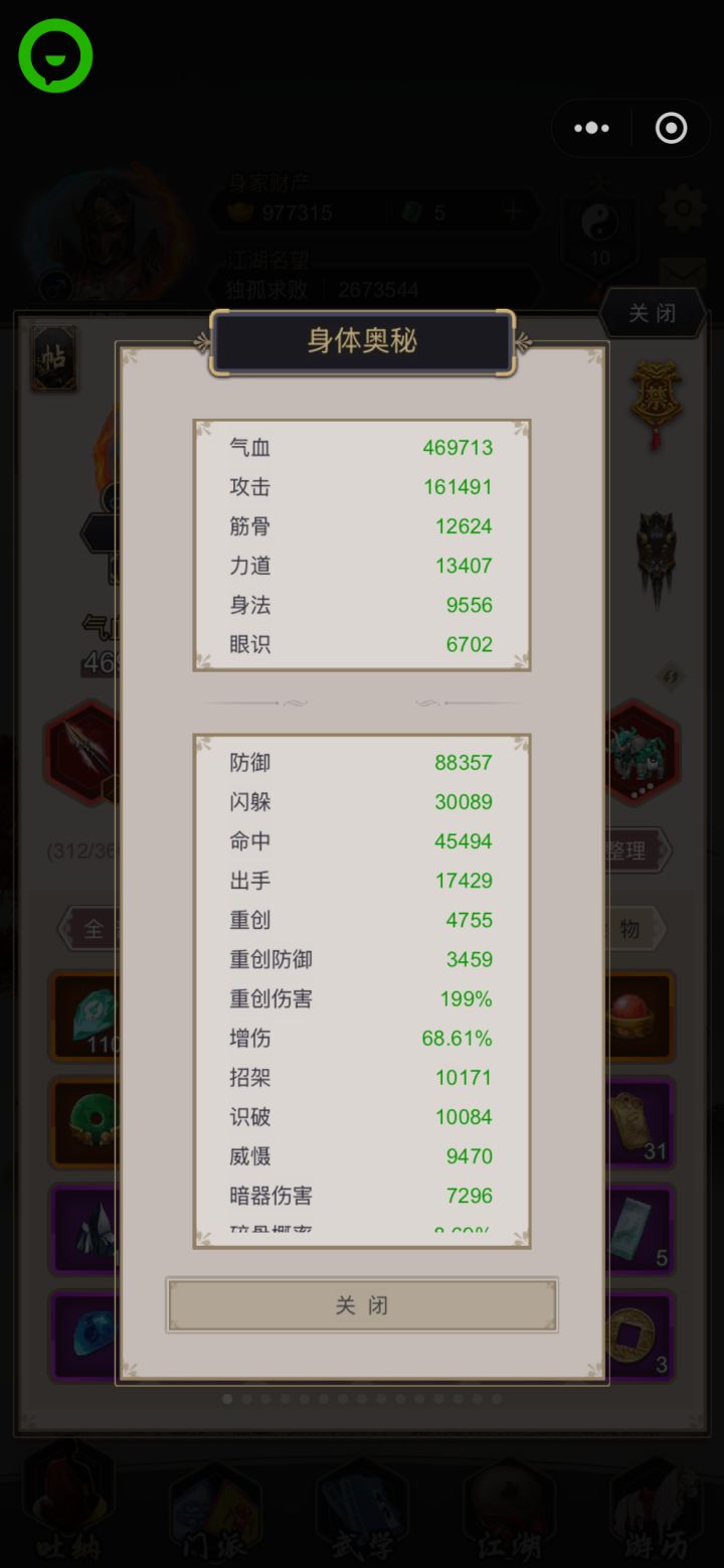 兄弟们,玩这个游戏很久了,纯小白入坑,一直当休闲玩,不氪金,慢慢磨。现在是身法剑,洗髓65级,身法8549,卡在七星堡第一个BOSS司空虎这里,十二正经开不了。我知道打赢他才能拿《斗宿经》解锁正经,也知道身法节点点了就能破万,但就是打不过。技能带的是追魂剑、寒风、沧浪、雾隐这几个高星技能剑,心法游龙惊鸿也有,被动能塞都塞了。面板闪避12.2万,按理说够了,但进去就是打不过。丹一颗没动,攒了