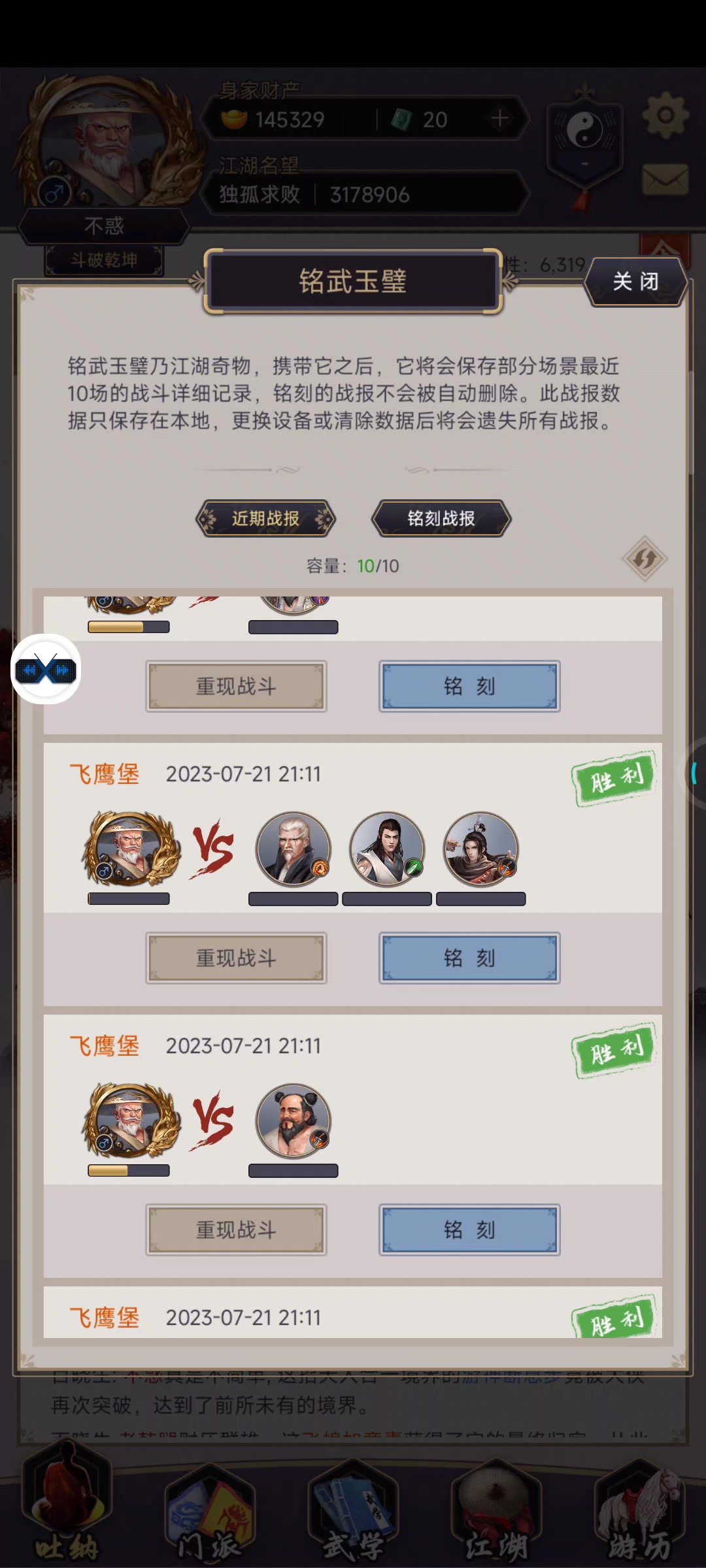 纪念剑过楚无敌录屏。