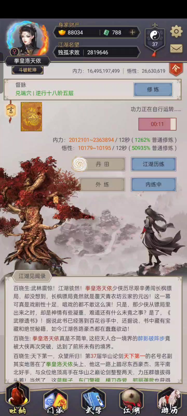 靠反击把大夫人打死了不怕被晕了,然后靠着闪避躲了挺多伤害 风天跟天风道人两个加闪避,阵法闪避拉满,心法逐电还是能够闪起来的,最后差点就被一枪戳死,不过靠自己闪了直接反杀 弟子属性,装备属性,自身属性视频里有,六职御敌全满 正好赶上坑钱窟活动没办法赌图,所以一直在沉淀,坑钱窟活动结束之后就去把太清绝技拿了,等到风天之后就开始赌了,本来以为要赌很多次,结果三四次就过了