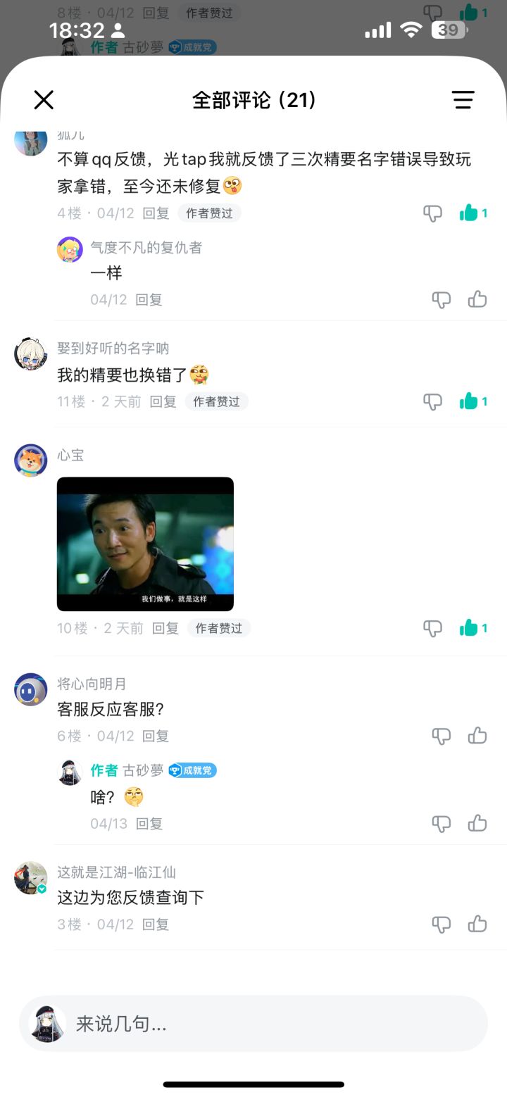 前次活动我多花20颗珍珠的问题,一个月了不能解决,昨天吃到圣子3000rmb充值问题半个月未处理的瓜,我释然了。什么叫尘目泥光?尘泥极致的短视。我估计客服比较摆烂,问题复制粘贴交差,也不知道谁是谁,毕竟拿死工资,工作氛围也差,服务积极了可能领导还觉得他事多,自己也多拿不了一分,干脆摆烂算球。上面领导也摆烂,他们自认为不影响自身利益的问题就不急,别说督促了甚至可能管都没管。现在这波人可能就没