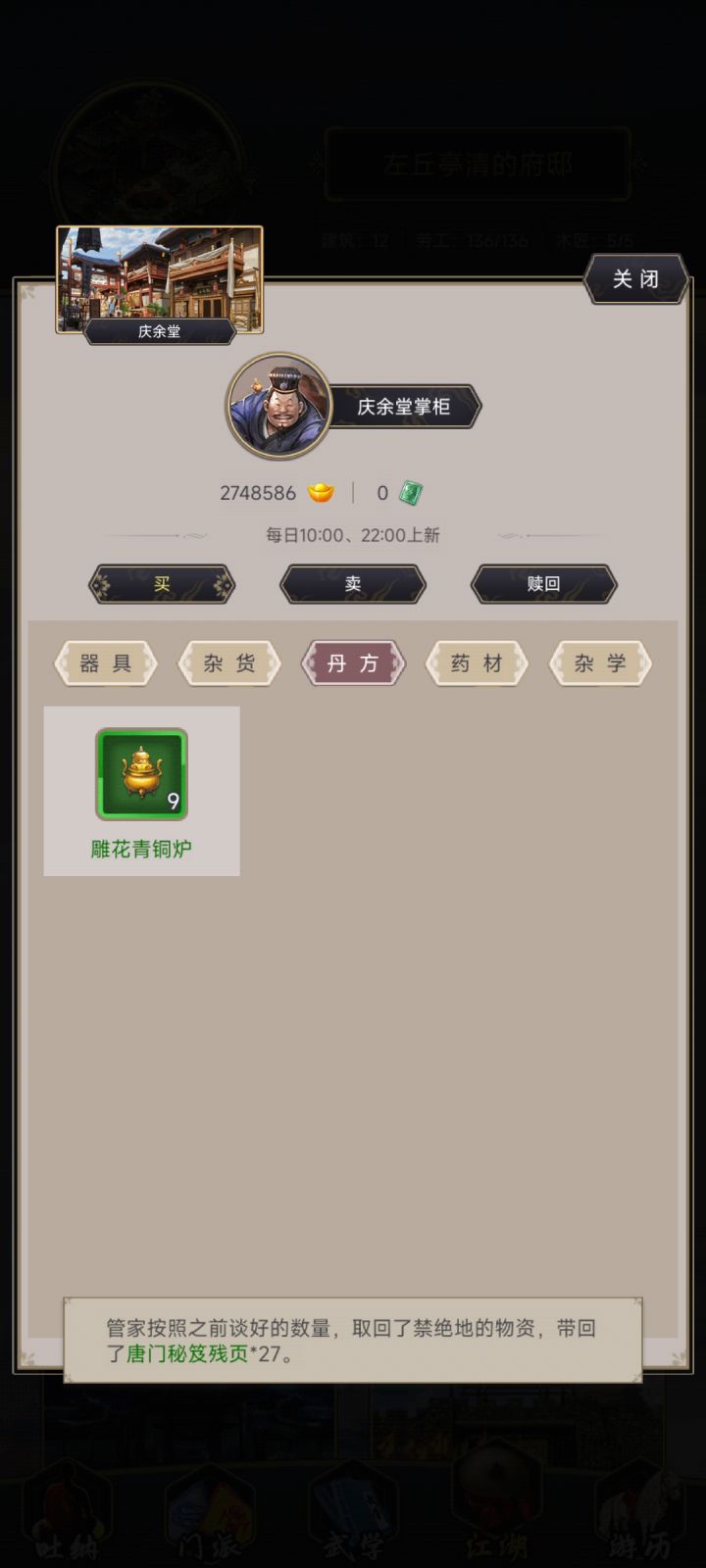 一直以来未做通关属性记录年后初八还是初九玩的忘了,迄今为止第二张月卡刚刚过期总计60天也就是两个月。(非常感谢爱佬,权佬等各位大佬的有问必答,能这么快,各位大佬功不可没)通关时间:3月5日造船成功速通日本过七星3月8日通关1253月14日通关武穆3月18日通关飞鹰3月22日通关青衣3月28日通关镖局4月2日 通关百花4月7日 通关赤炼4月21日通关横渊(从横渊开始换的不动,3