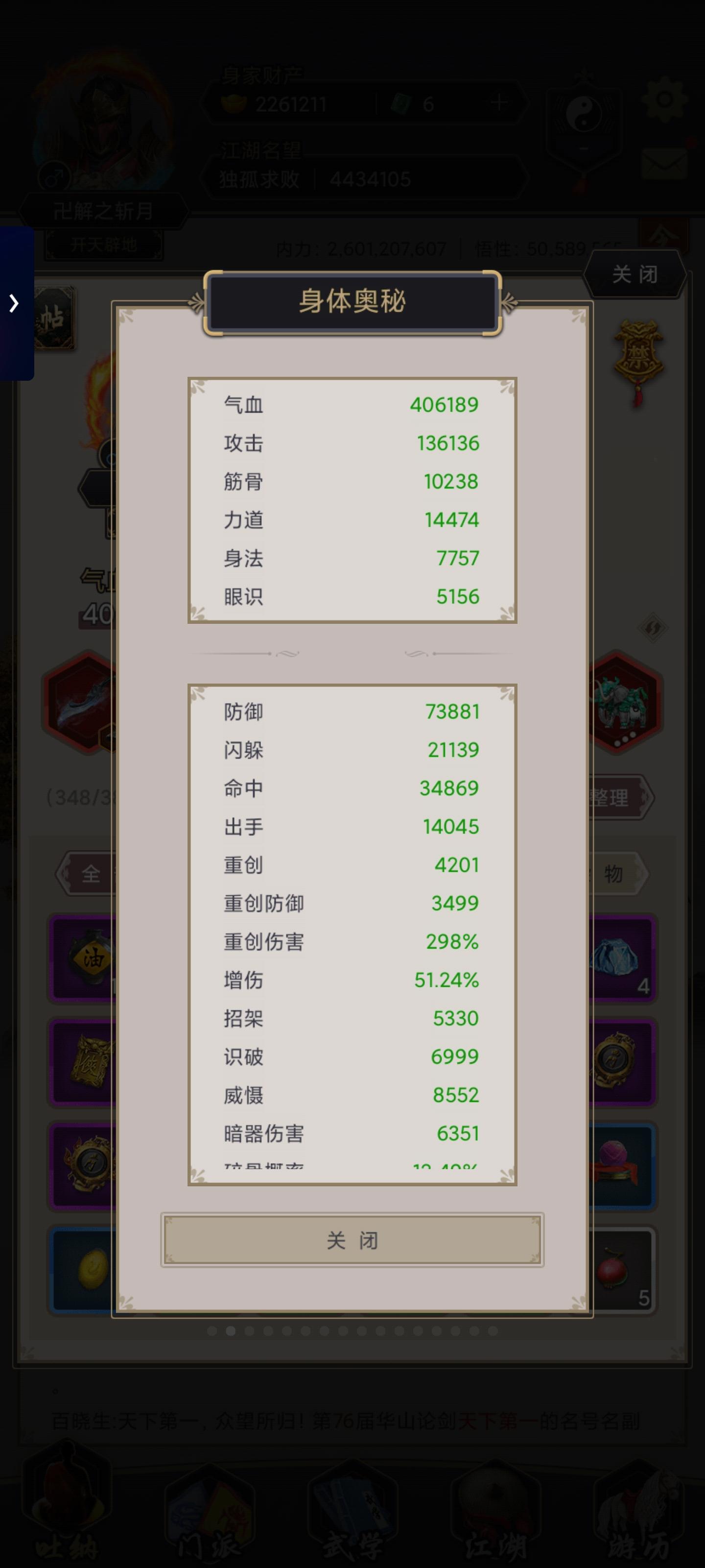 昨天rp爆发赌过3人组,据说岳玄锋已经被改成了瓦岗0.7版,过3人组就能过瓦1,过瓦1就能过瓦2。昨天没精力了,且今天才能把封穴心印升到12级,介于自身命中6w1过于低了,决定今天晴天开赌,5次过1阶段,10次过2阶段。佬诚不欺我。先赞扬一句:改版太一护元决天下无敌!开局保护暖机3回合,4-6回合固定高质量爆发buff,高度契合其他爆发点。没有护元我会开局残血,4-6回合更没有如此高爆发,多3