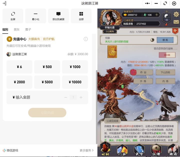 小程序PC电脑版直充,卡我3000元