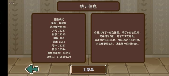 我玩病号音乐男(陈居亿),两年时间爆肝,获得年度漫画家、年度音乐制作新星、年度独立游戏新星。以下是我的攻略以及抱怨1爆肝:这个游戏时间是关键,需要分秒必争。这个游戏有个机制:人物只要没死,就能干活。只要避免人物死亡,哪怕状态再差也能干活。音乐男有三种死法,第一种熬夜处死,只要睡到自然醒就可以恢复,小case。第二种,健康归零生大病死亡,多买点饮料加健康,小case。第三种本身的疾病,去医院,小c