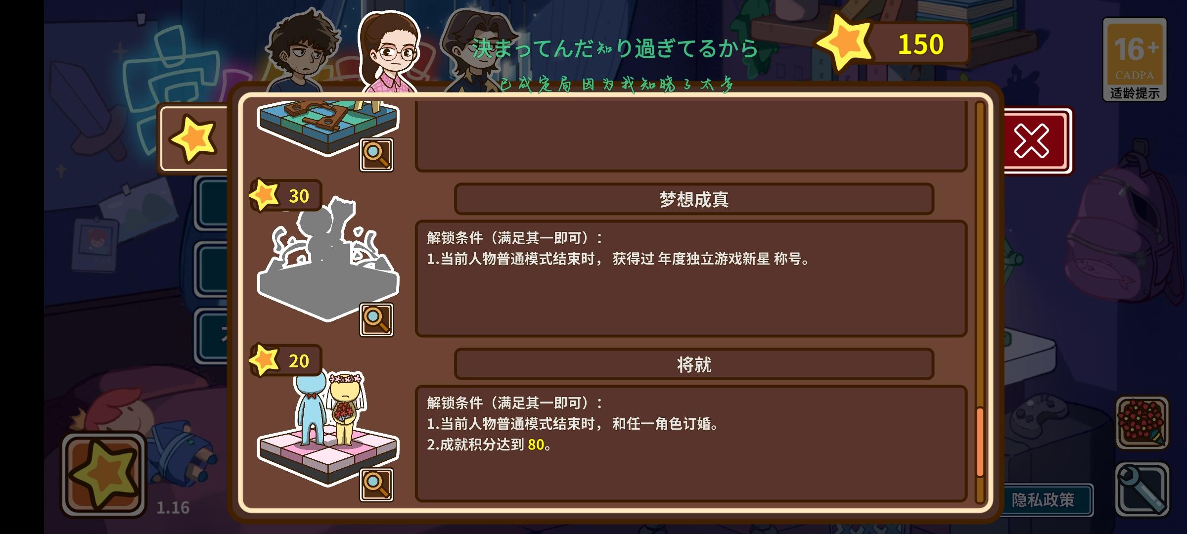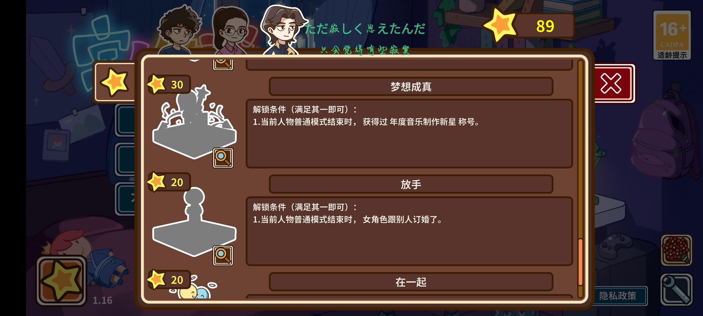 #游戏日常 这条线好难,花钱就涨压力,也没得西北风喝啊🍔关于食物不买50以上的,没开自动吃东西,只开了自动洗澡,全程靠点点点💡心得看爸爸的信息会涨好多压力值,全程没点开看,。,每季小说漫画和游戏的比赛尽量参加,积累人气很有用。游戏的比赛要是参加不了就算了,优先另外两个。🖊️关于学习和赚钱1、刚开始没有学编程,做游戏前期投入太大了,没有人气的时候也卖不出去。先学了写作和