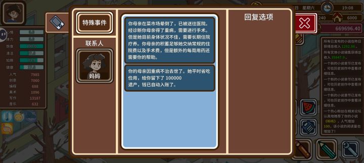一直害怕母亲病死,所以一直肝钱,好在快手术的时候肝到100了